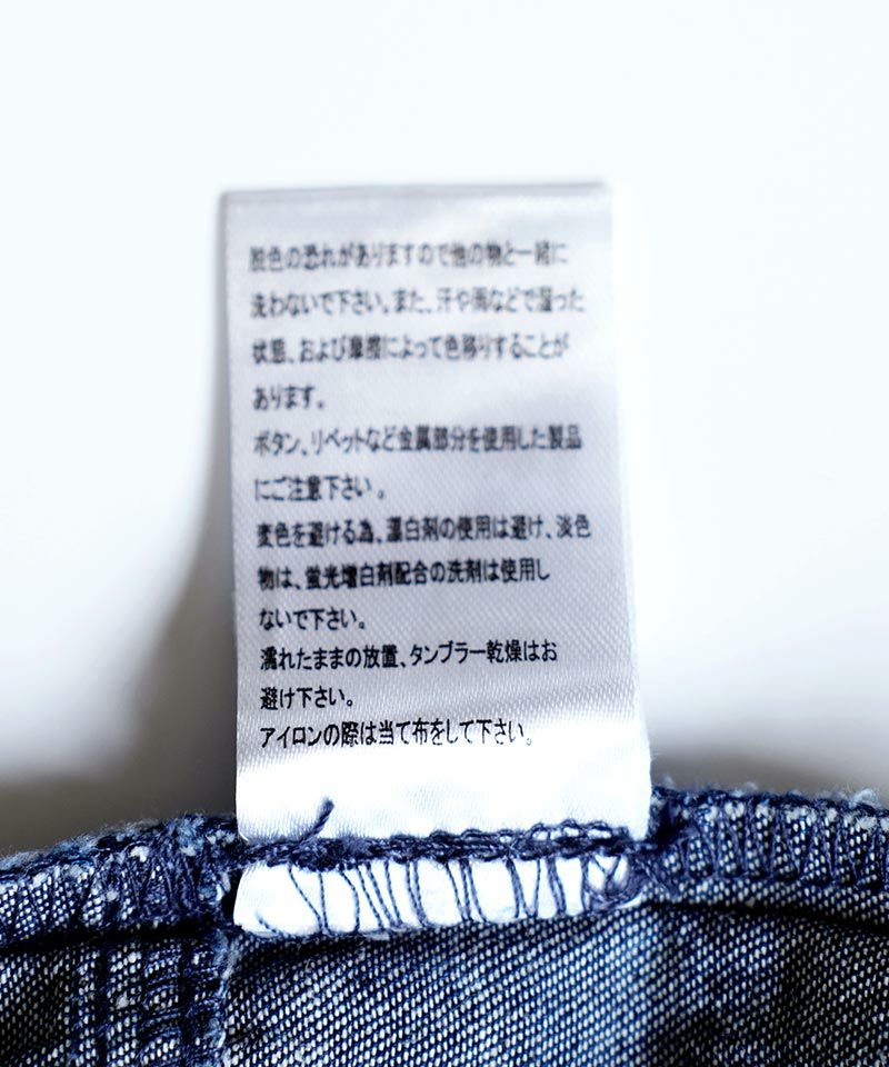 着用時の摩擦により淡い色のベルトやバッグ、他の衣類等に色移り致しますので、ご注意ください。