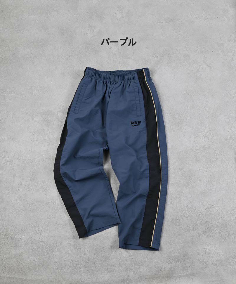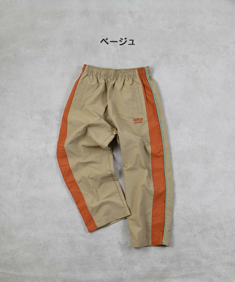 軽いシャカシャカ素材のロングパンツ。