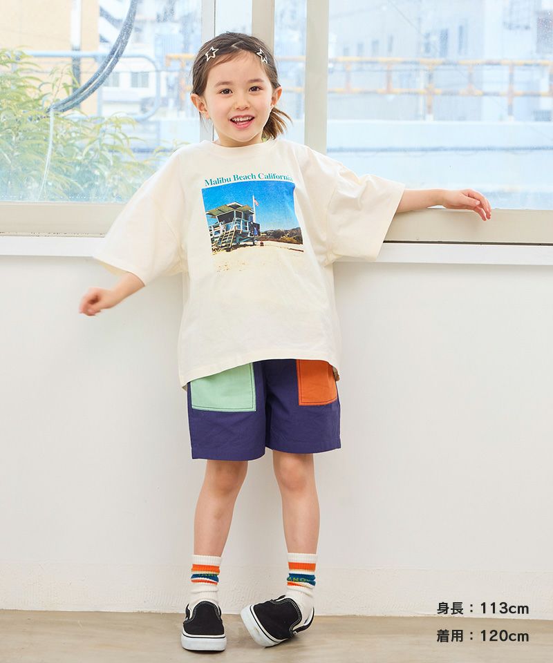 透けさせたくないのと、なるべく汚れさせたくなくて黒基調の柄を買いました。 ビッグシルエットなので肩が出てもセクシーにならないように基本下着的じゃないタンクトップと重ね着させてますが、意外に首周りは開きすぎていなくて、一枚でも懸念していたセクシーにだらしなくは見えず、女児にはよりボーイッシュなシルエットって感じです。 110cm18kgに120サイズ購入で袖が6分丈くらい、来年もビッグシルエットに着られそうです。