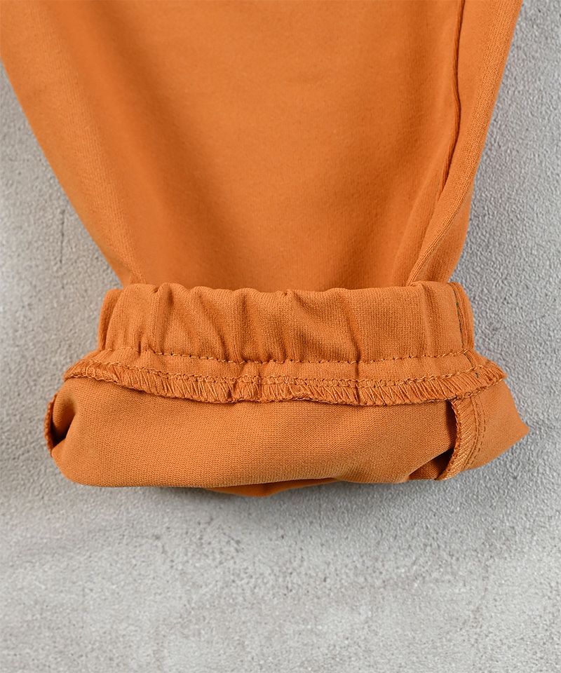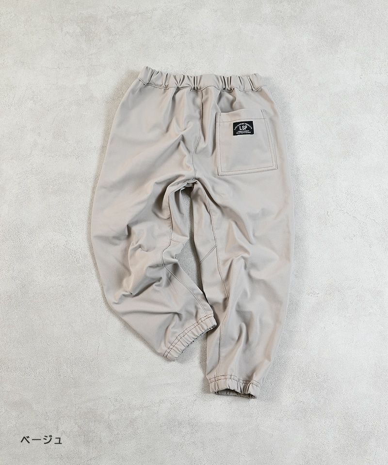 テーパード・裾口ゴム仕様で足元をスッキリとさせたシルエット。