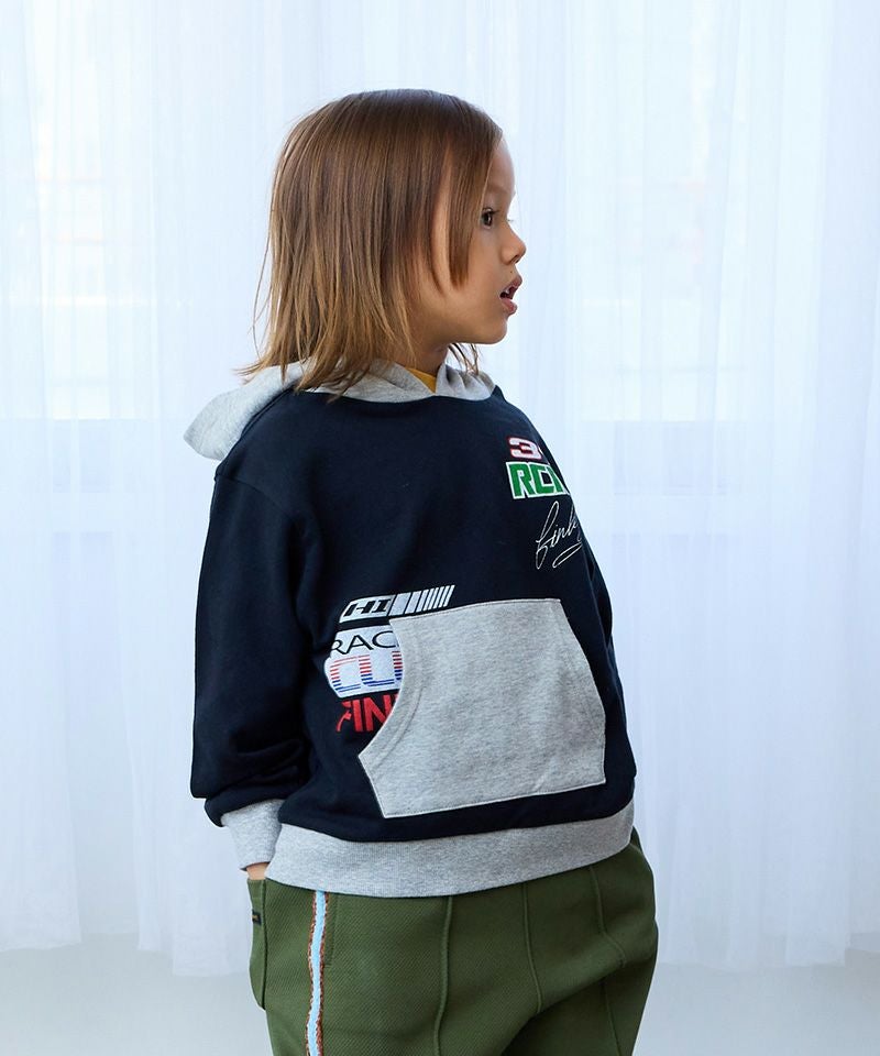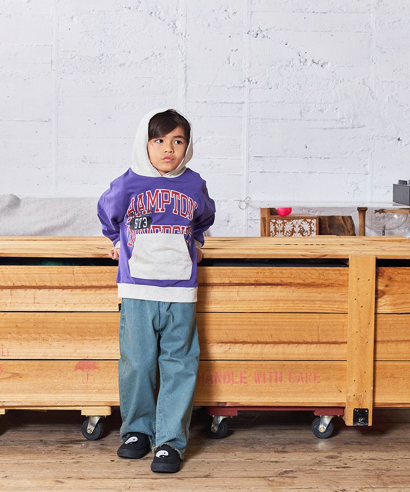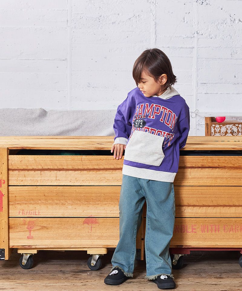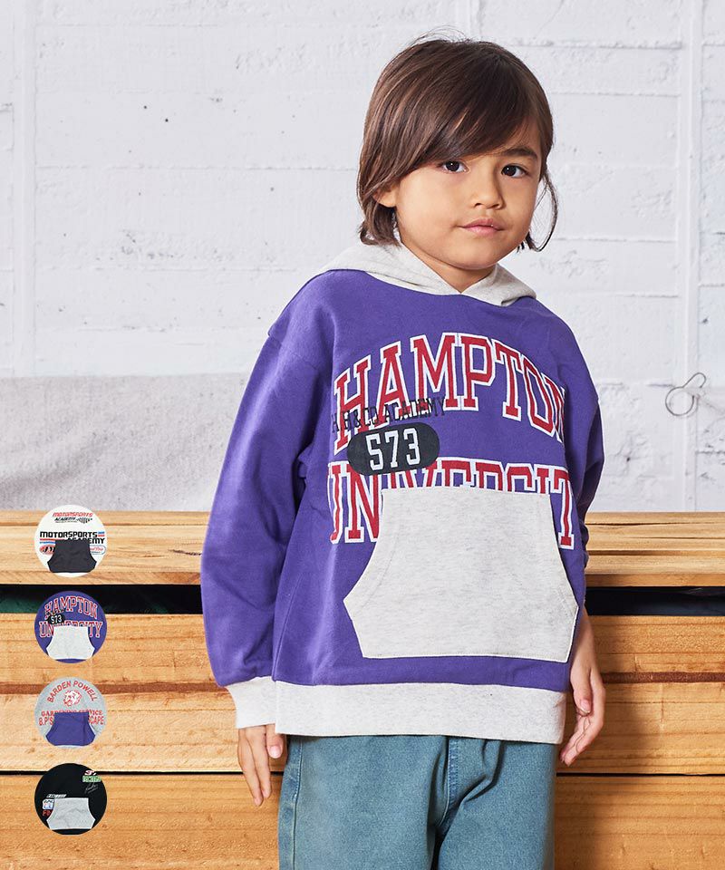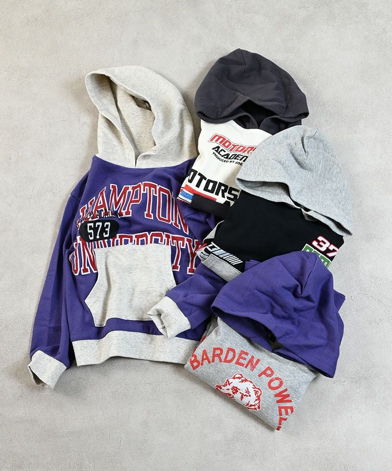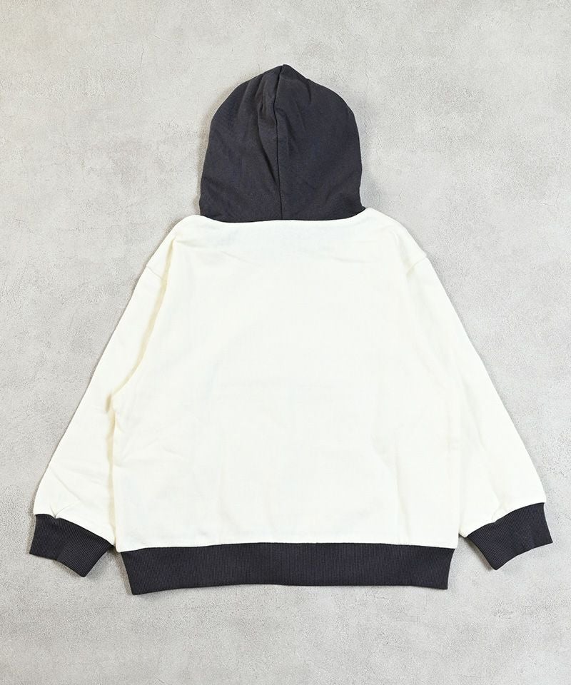 カンガルーポケットとフードの配色がコーデのアクセントになるパーカー。