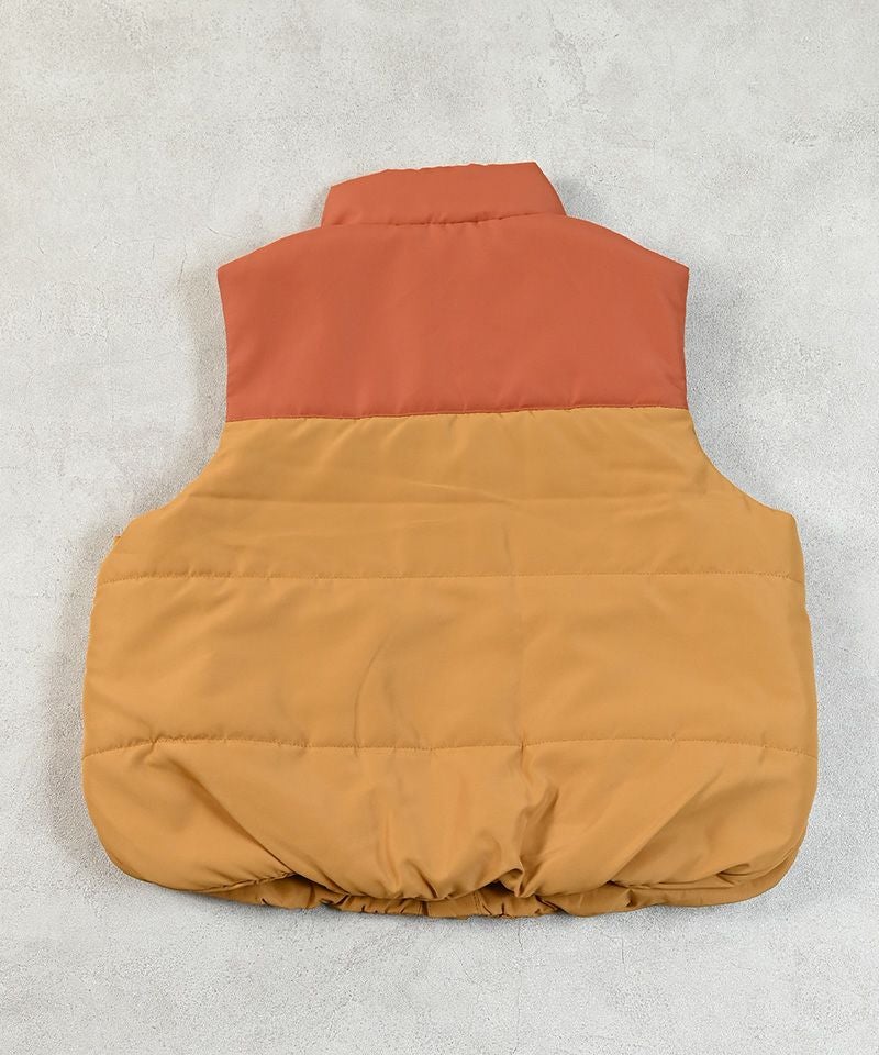 ヨーク切り替えデザインがポイントのキルトベスト。