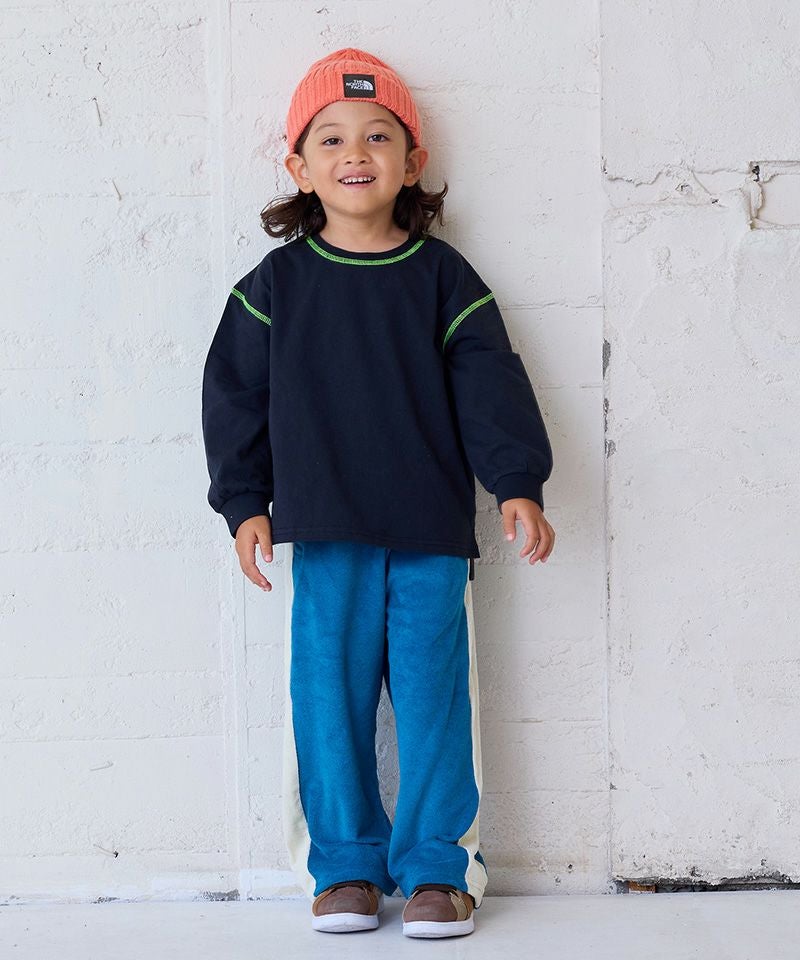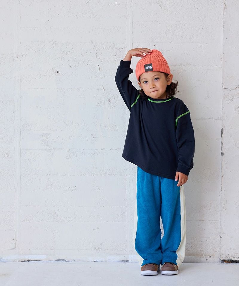 デニムやシェフパンツなどダボっと大き目のパンツとのコーデもカワイイです。