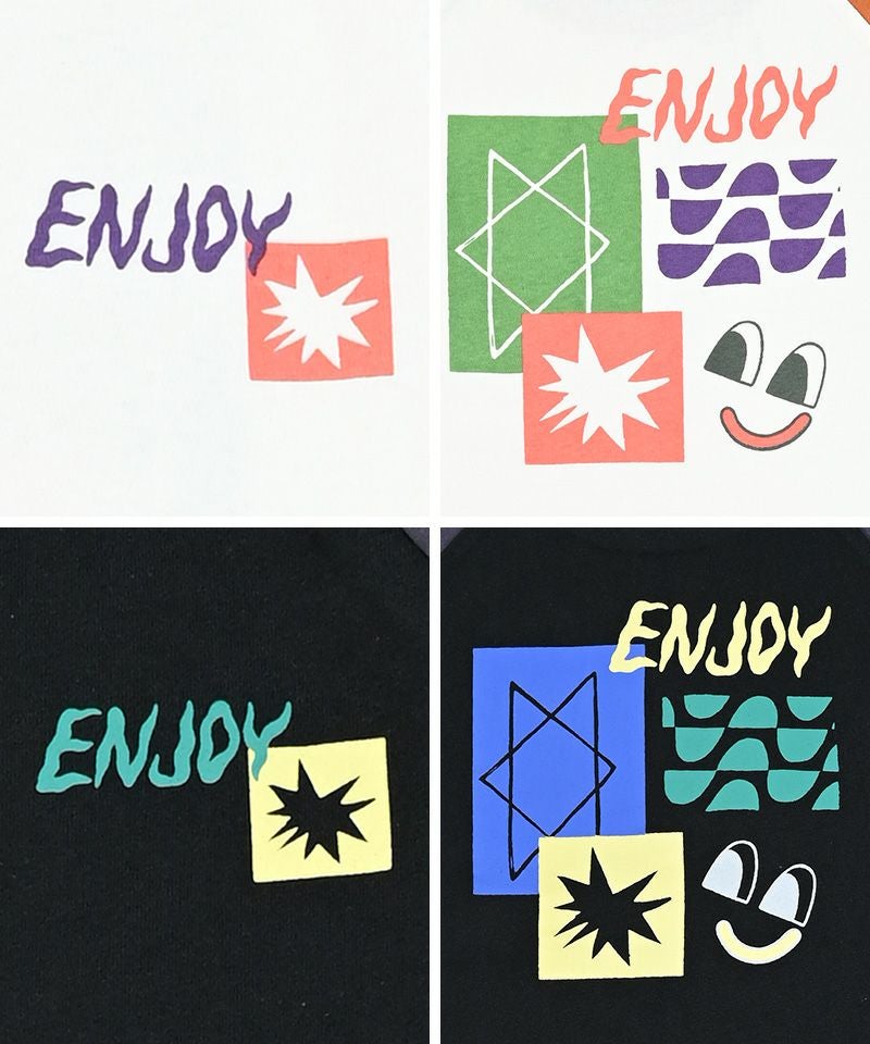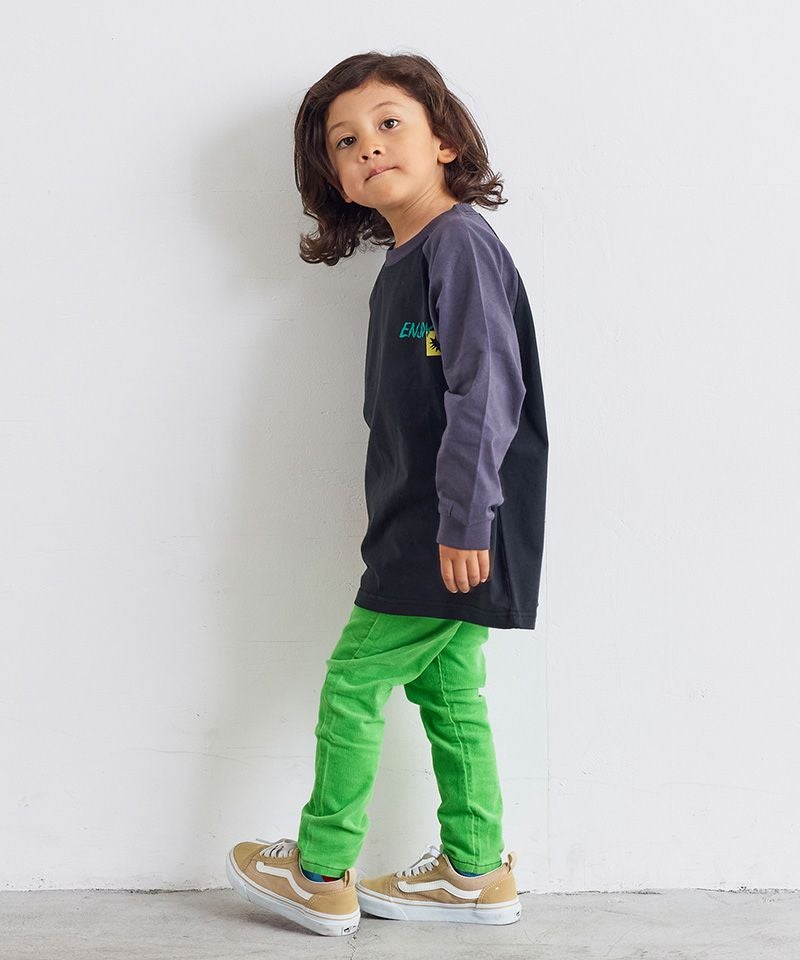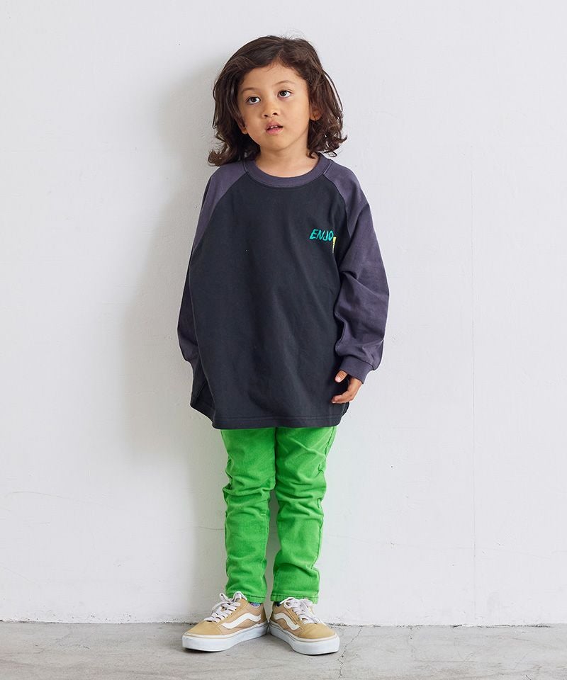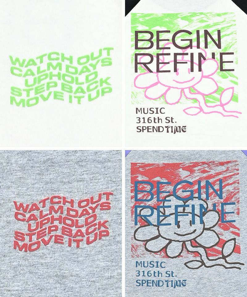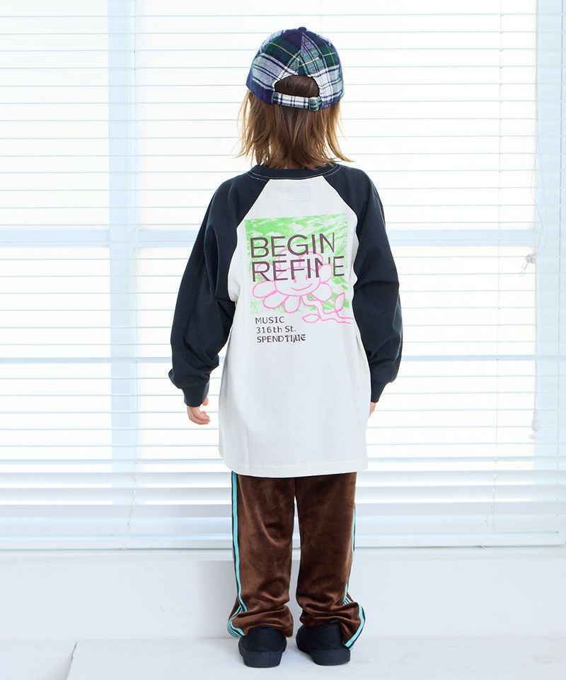 前後で異なるプリントがアクセントになったラグランロンT。