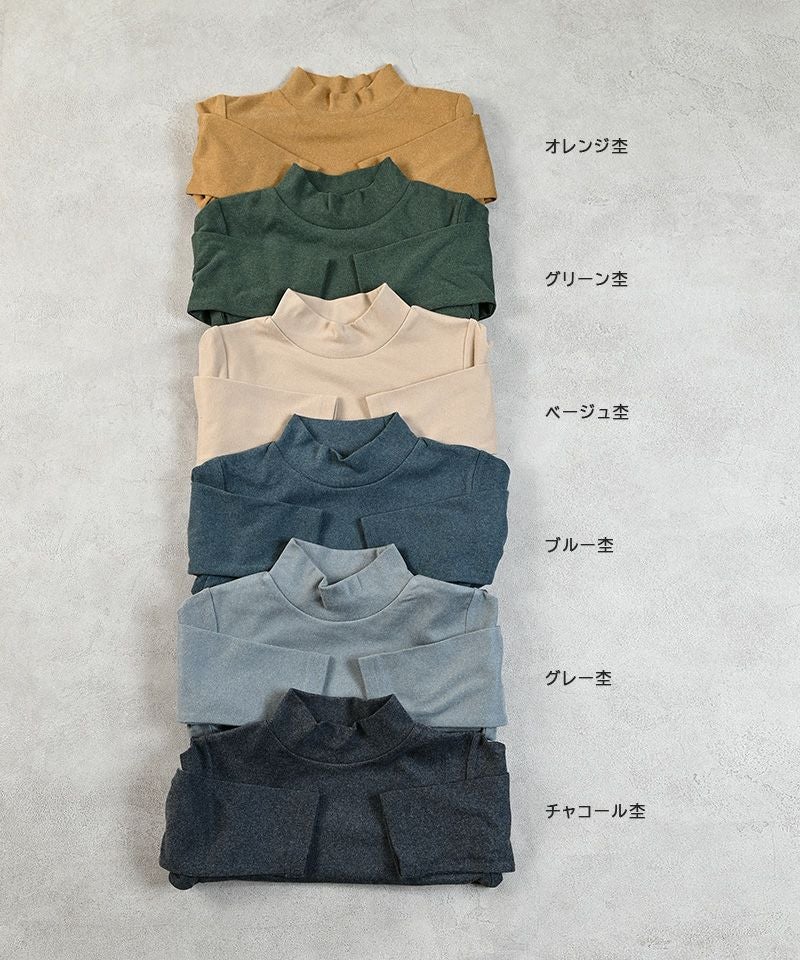 首まわりをやさしく包み込むハイネックデザイン。