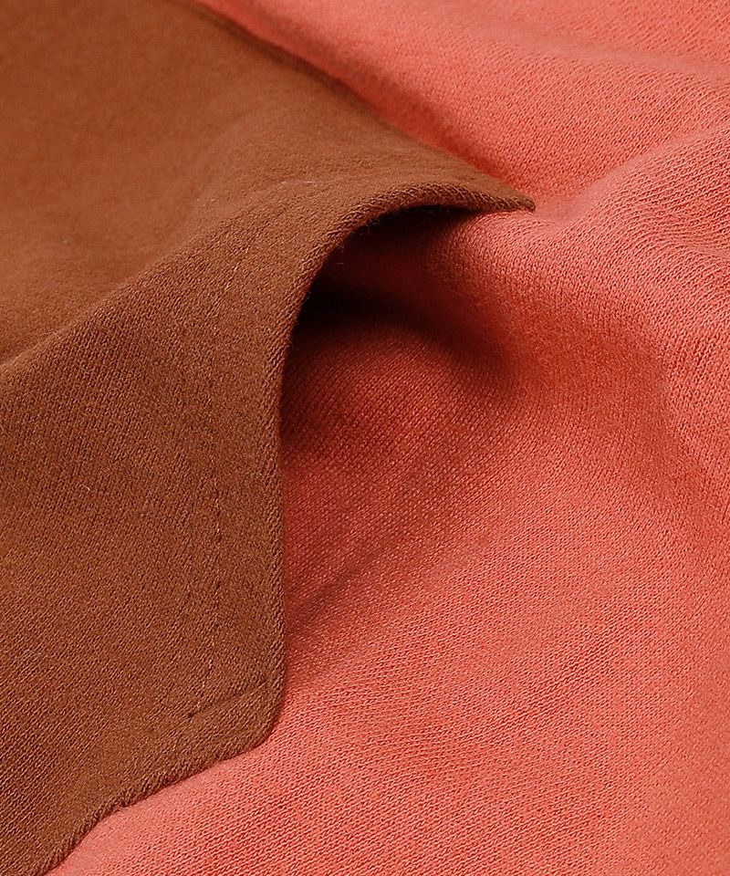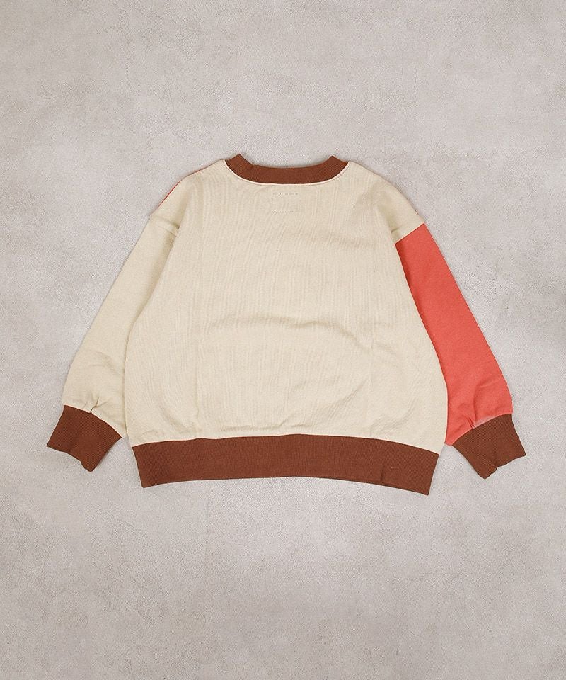 スウェードタッチの裏毛素材で、ふっくら柔らかい着心地に仕上げた切り替えデザインのトレーナー。