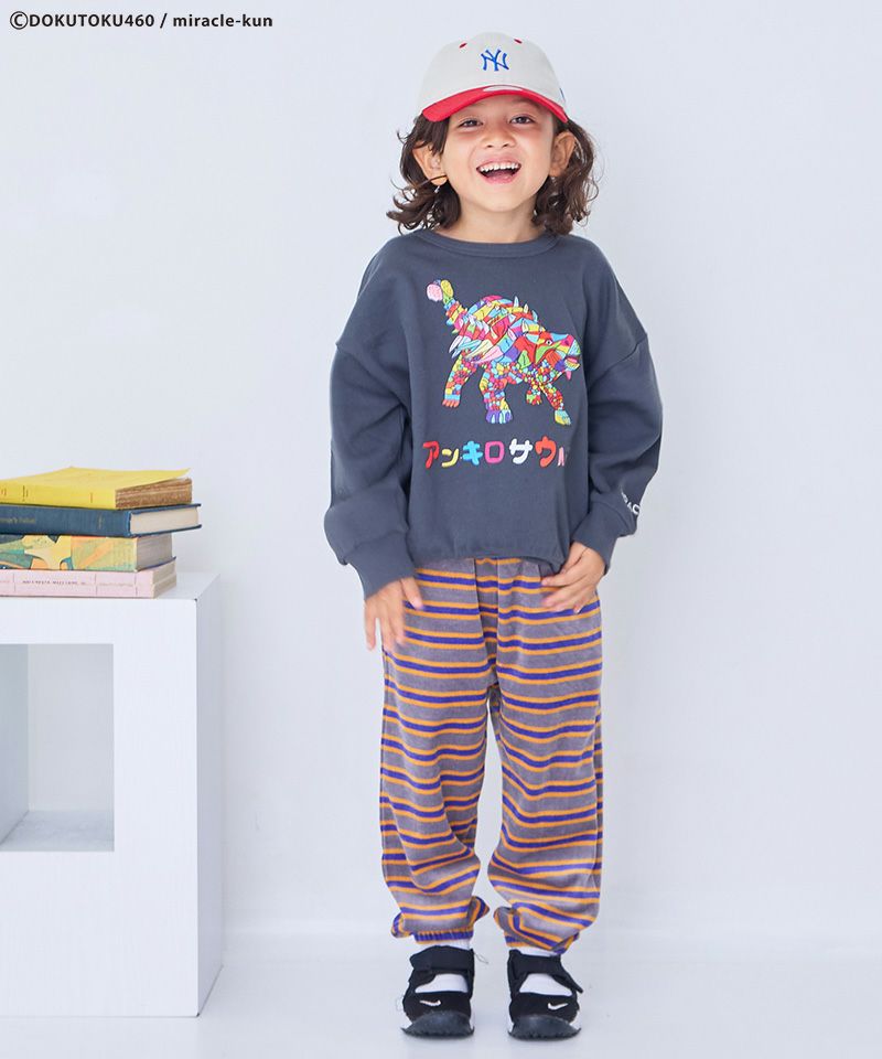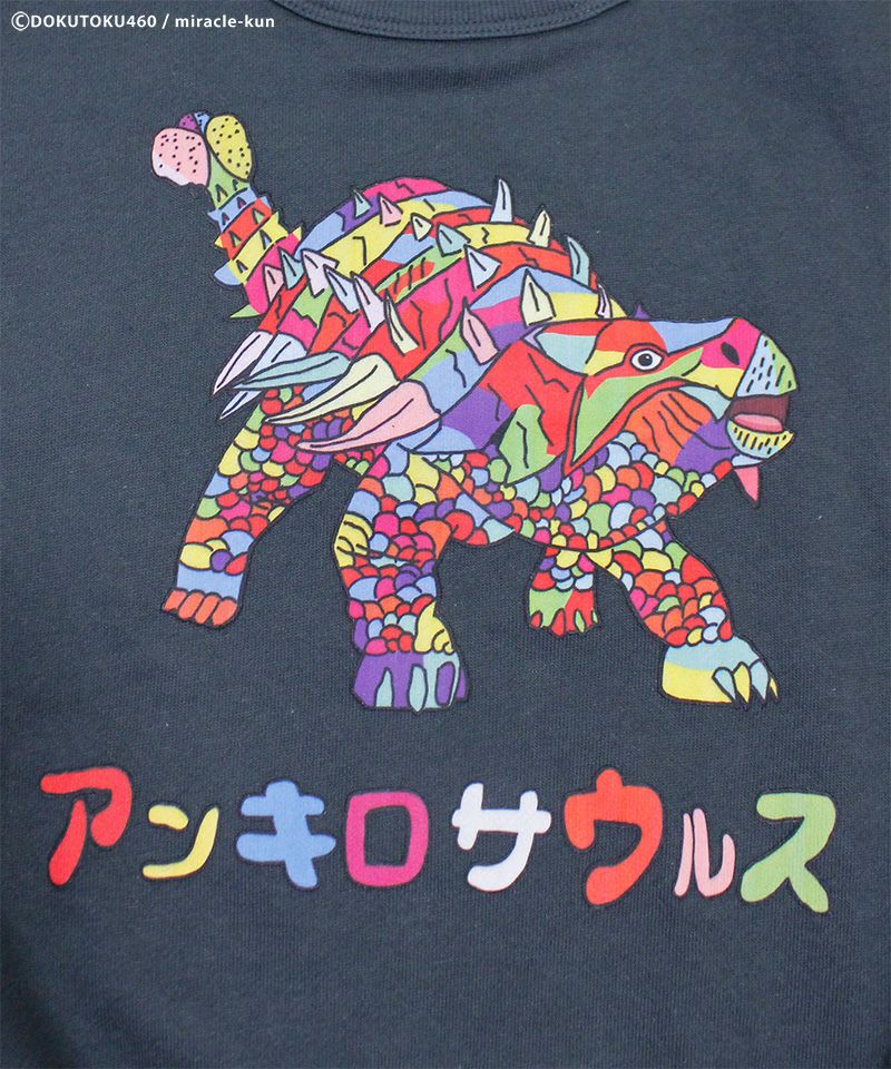 インパクト大の恐竜プリントで、シンプルなコーデにも個性をプラス。