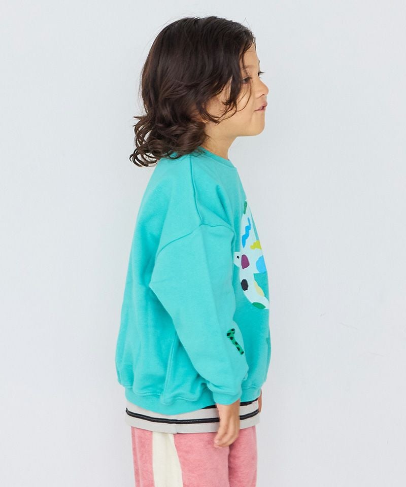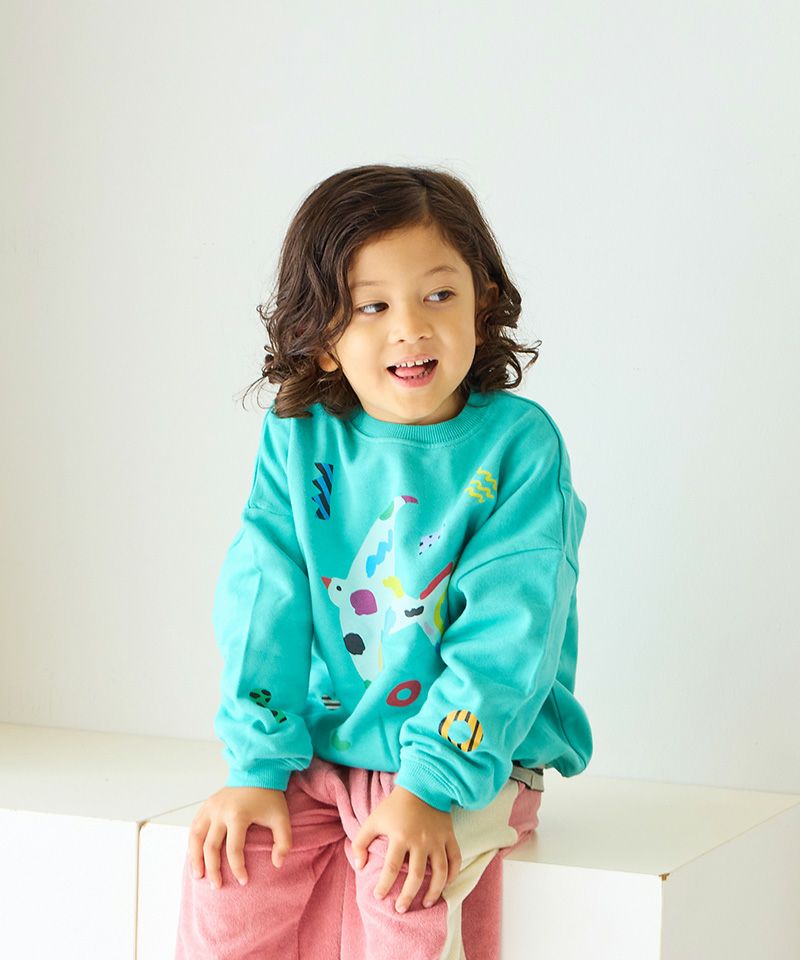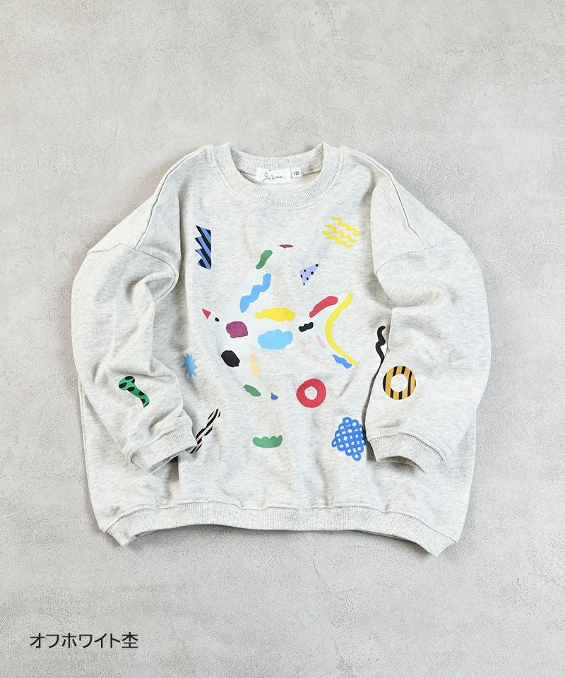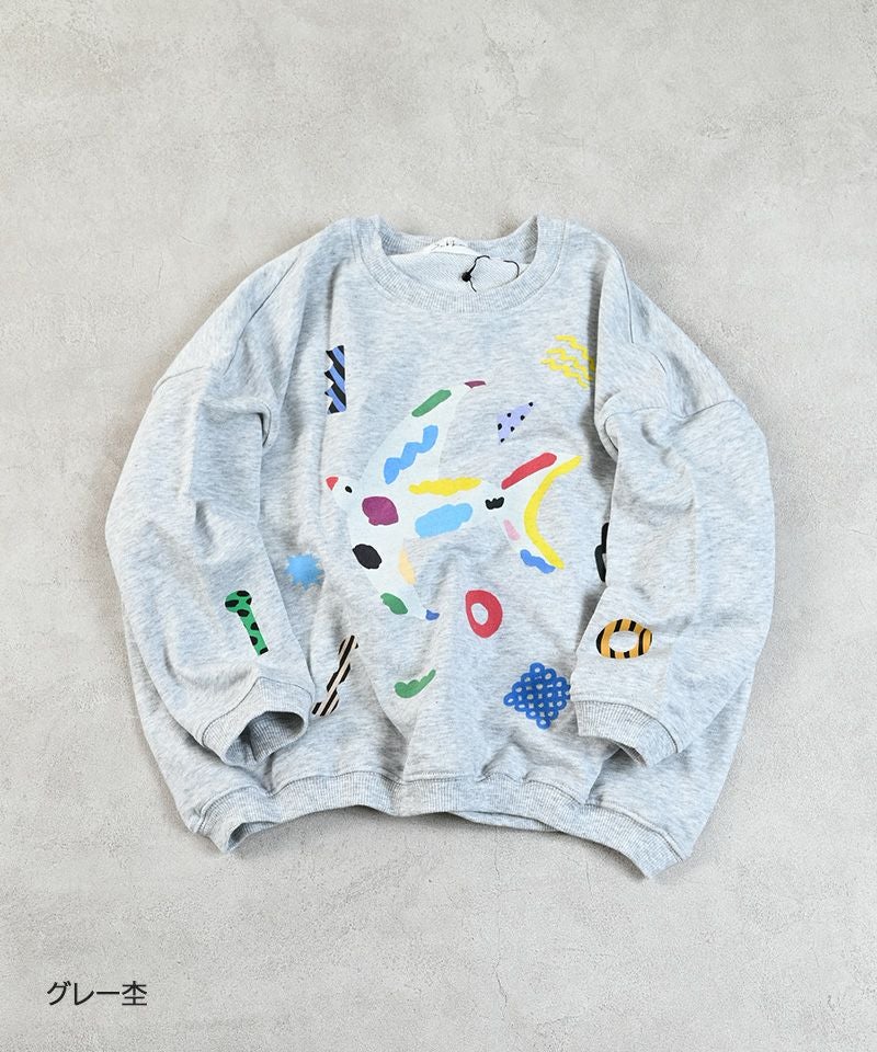 独特のタッチで描かれたプリントが、カジュアルなトレーナーにユーモアとアート性をプラスしています。