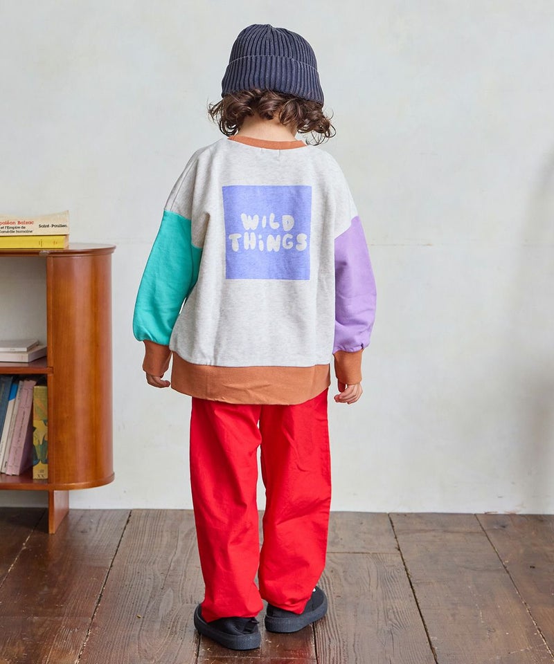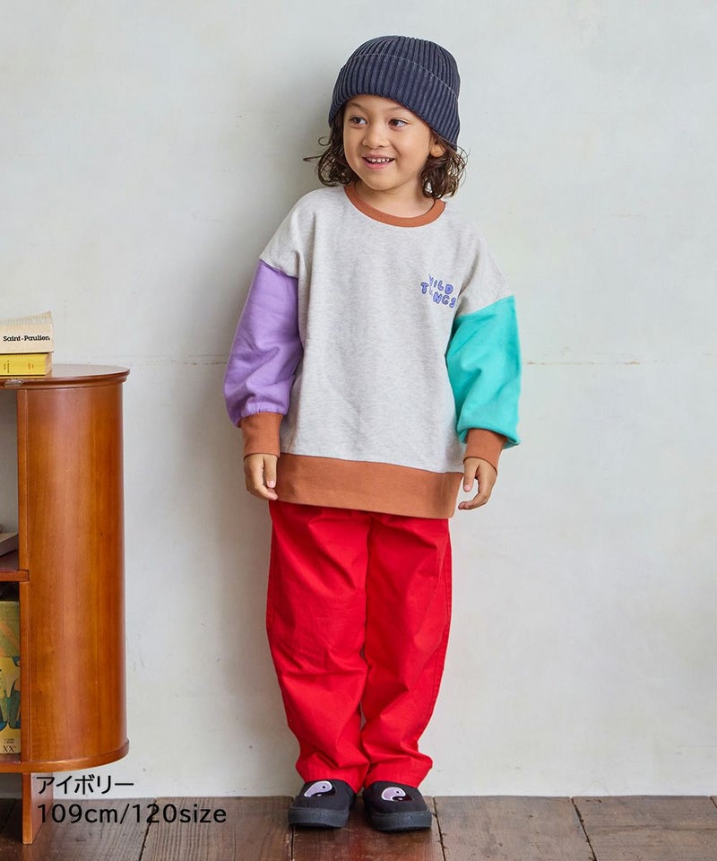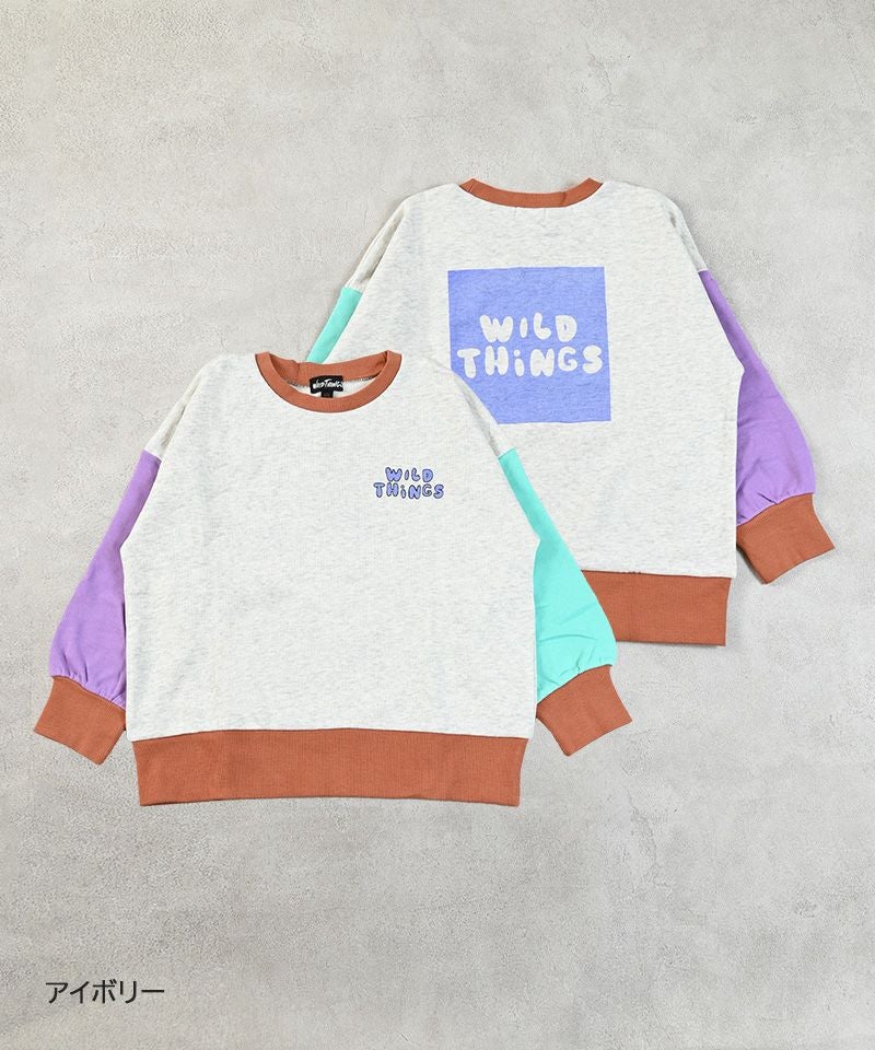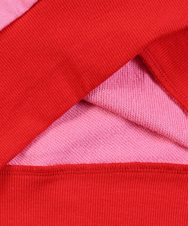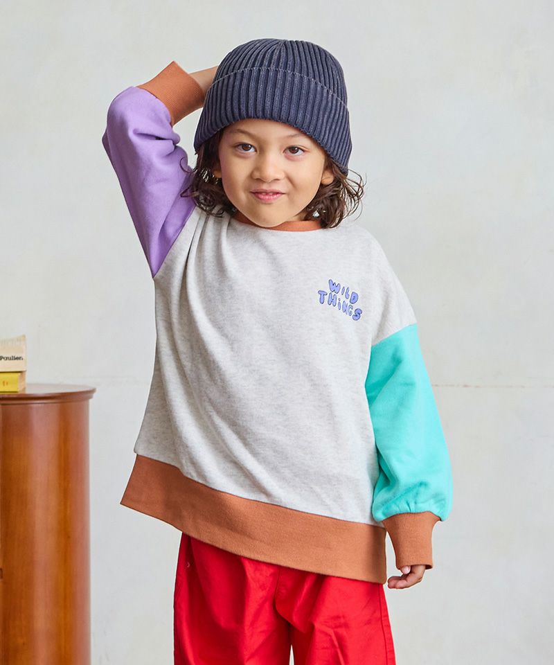 配色切り替えが目を引くデザインで、一枚で主役になるトレーナーです。