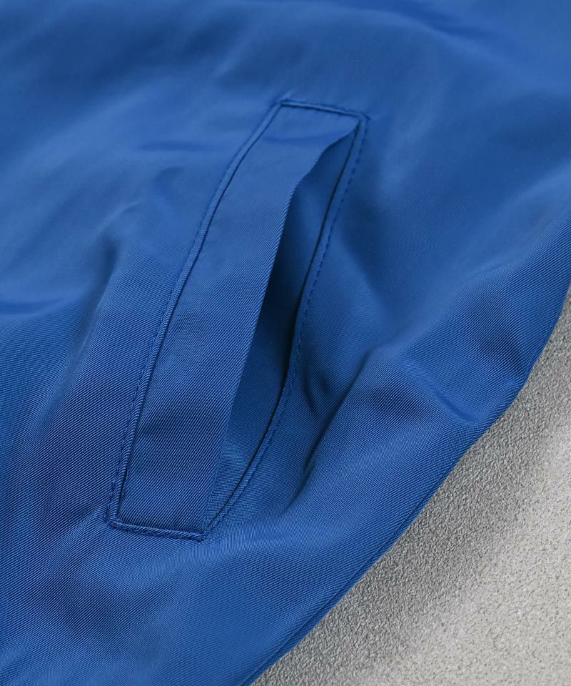 フロントはスナップボタン留めで、両サイドにハンドポケット付きです。