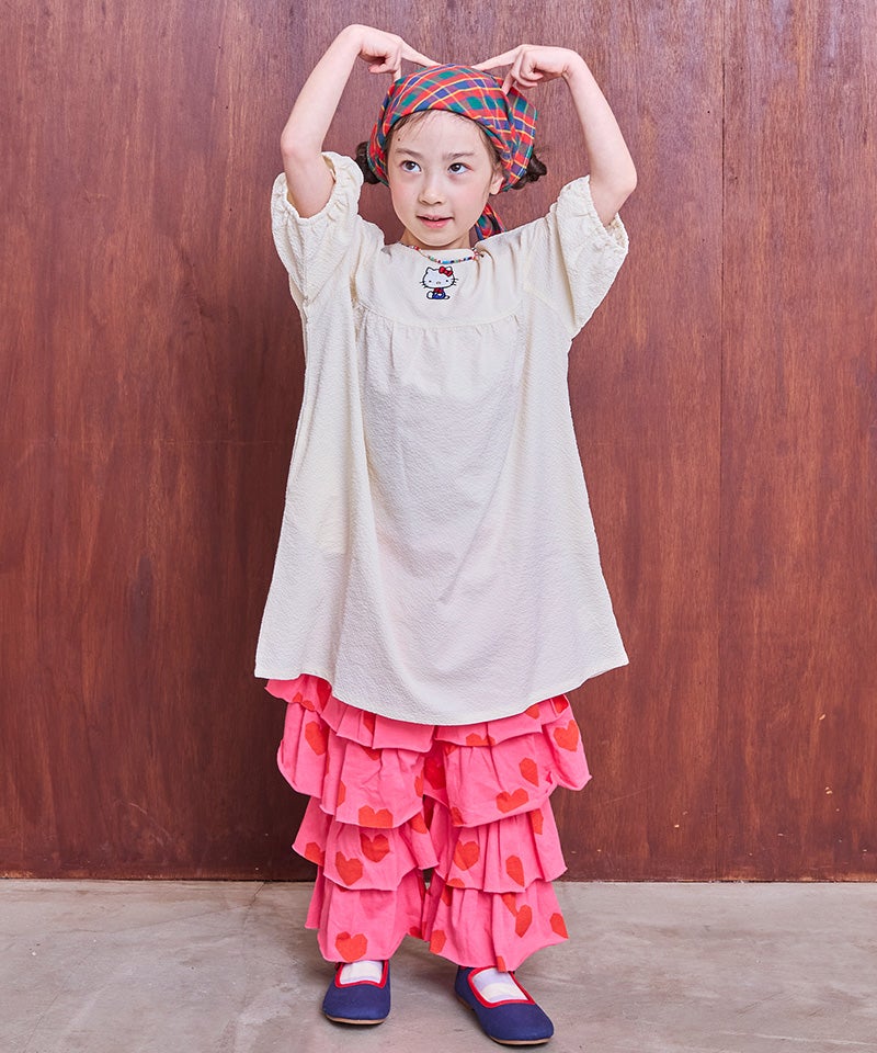 胸元のハローキティ刺繍がさりげないアクセントになり、シンプルでも可愛くキマります。