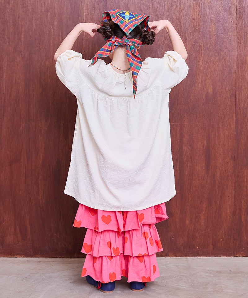 切替え下にギャザーを入れてふんわり広がるシルエットに仕上げました。