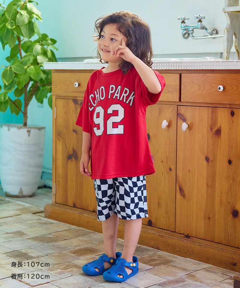 サッカーのユニフォームのようなスポーティーテイストのTシャツ。