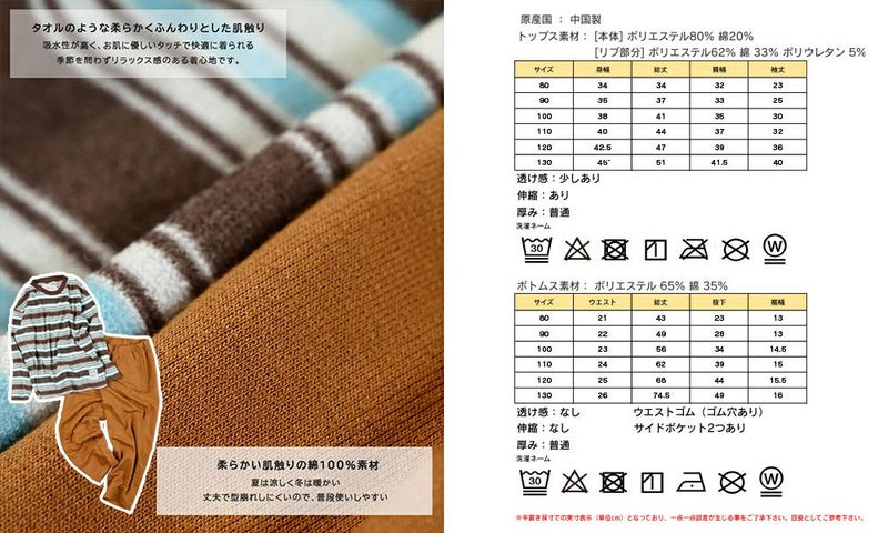 吸水性が高く、お肌に優しいタッチで快適に着られます