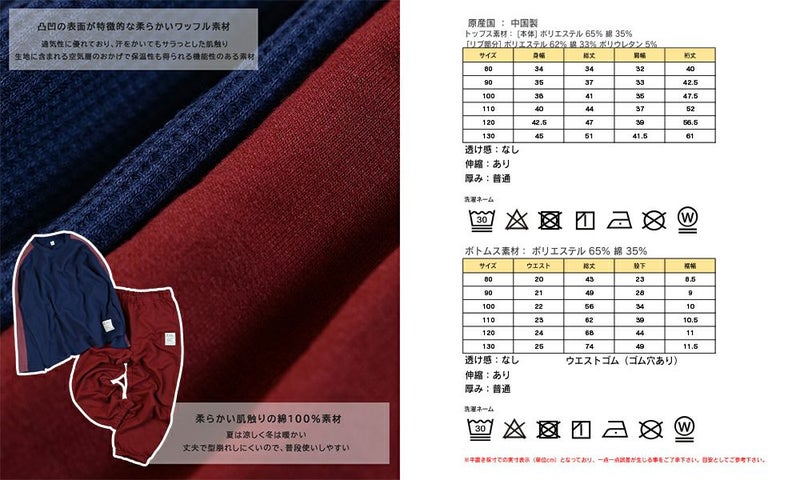 凸凹の表面が特徴的な柔らかいワッフル素材。