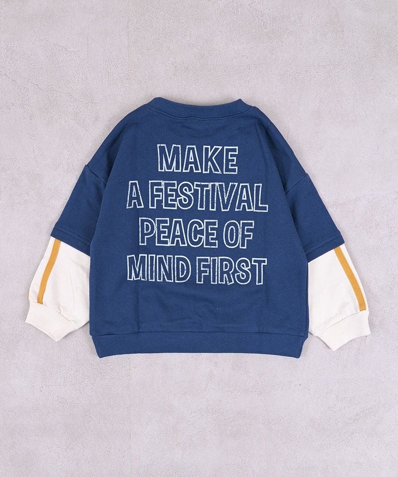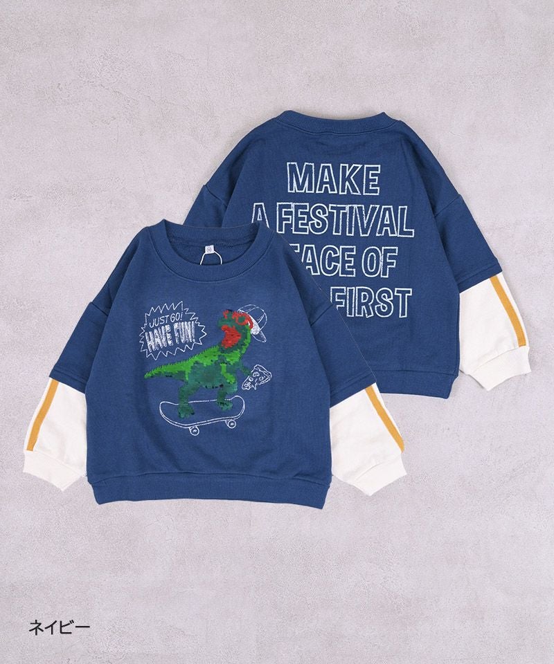 裏毛素材でやわらかく、毎日着やすいフェイクレイヤード風トレーナー。