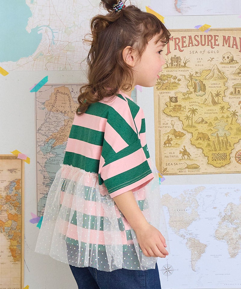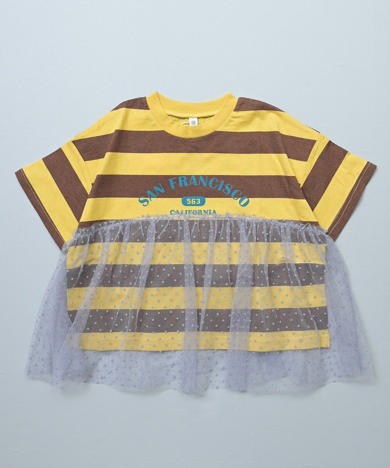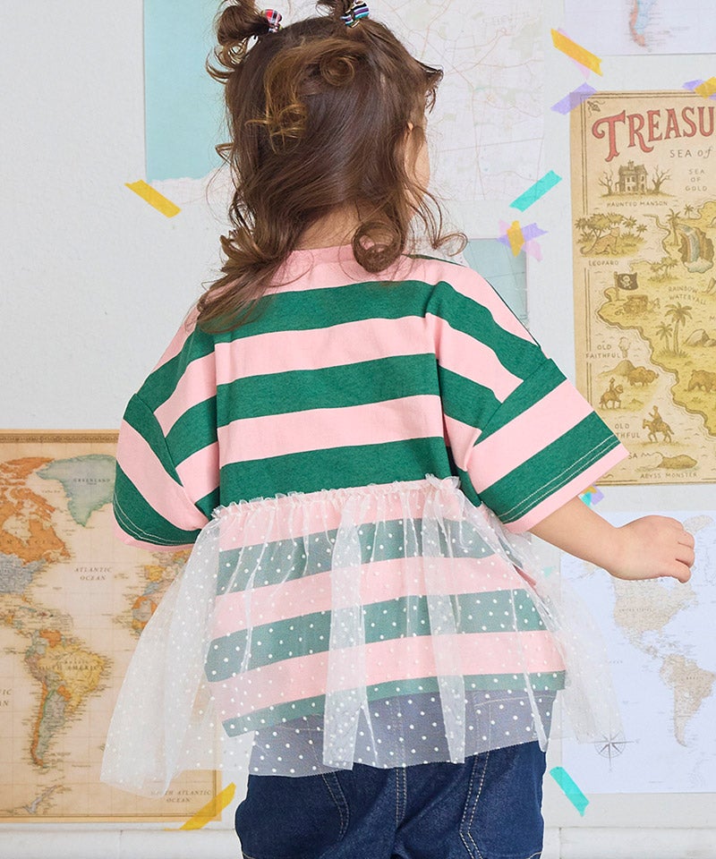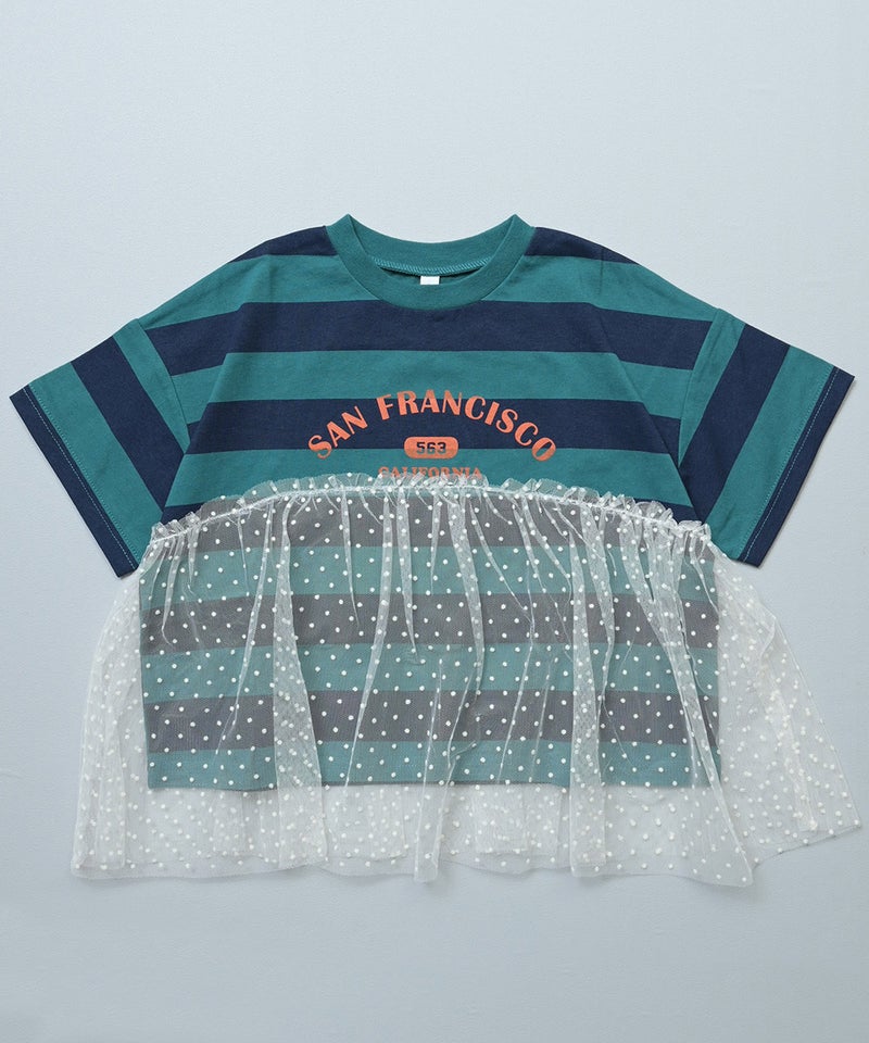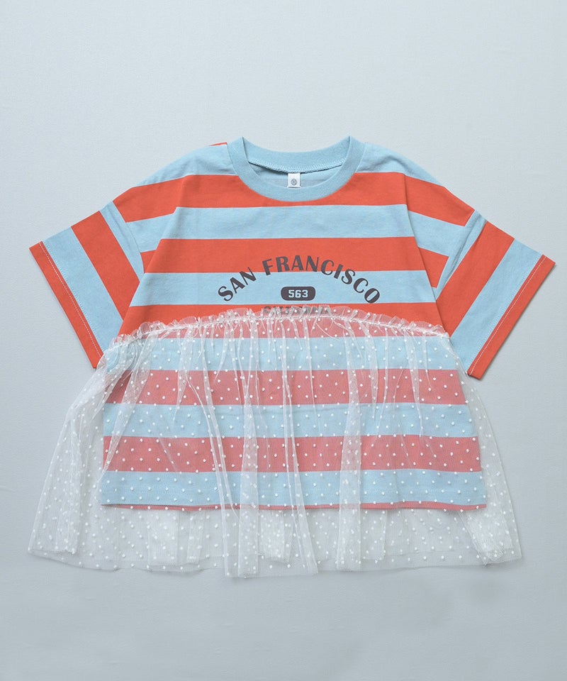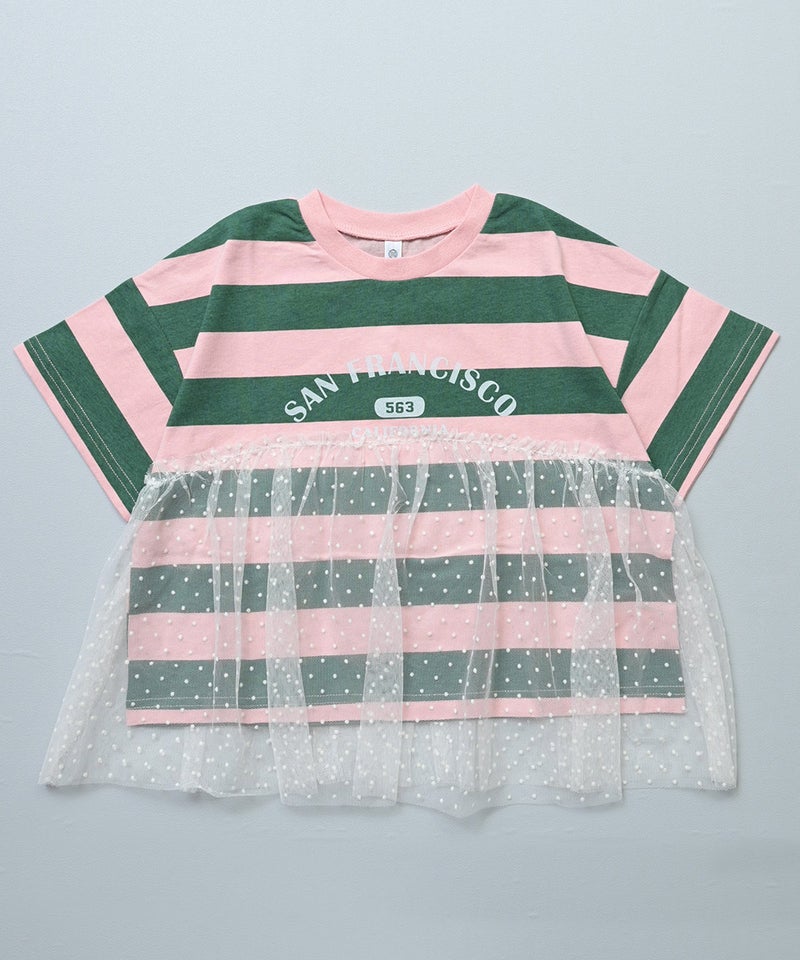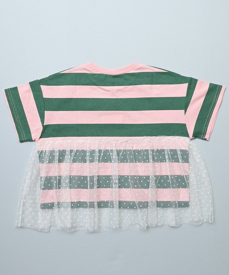 チュール付きボーダー半袖Tシャツ