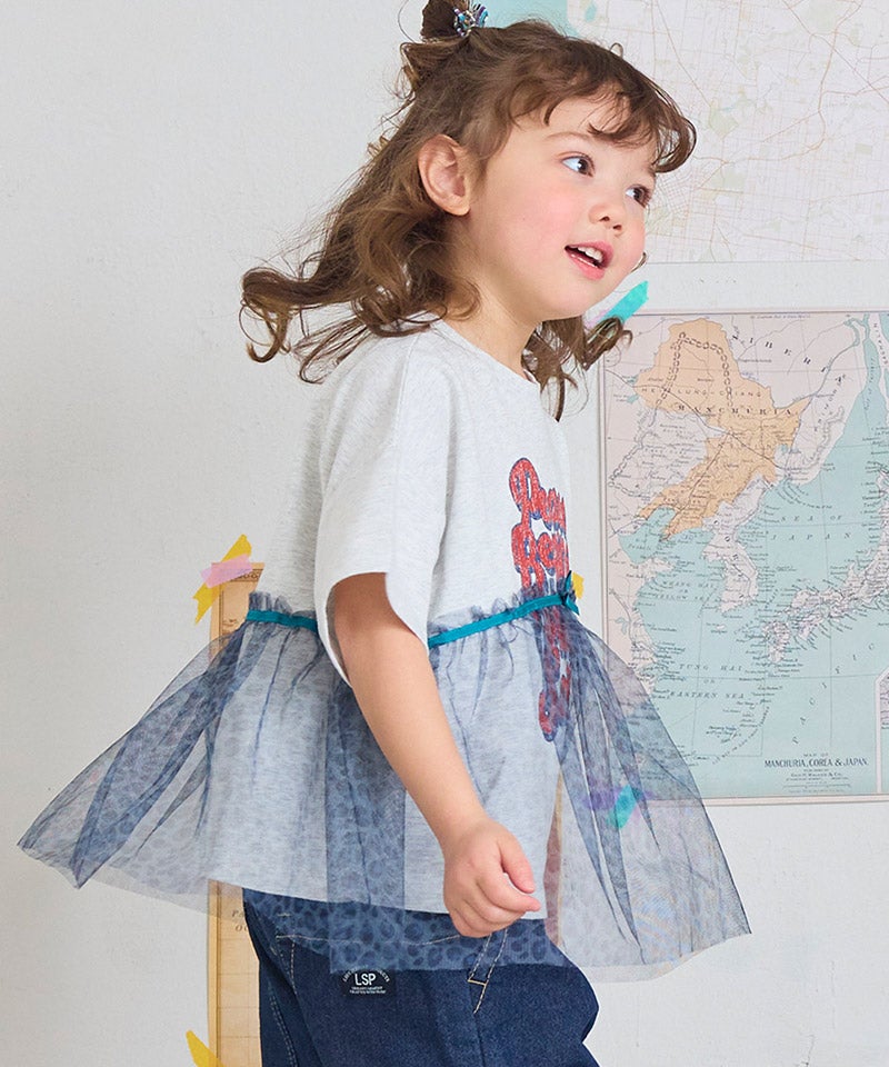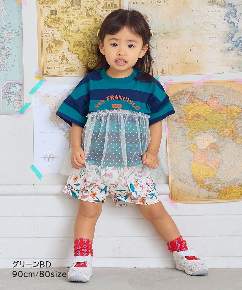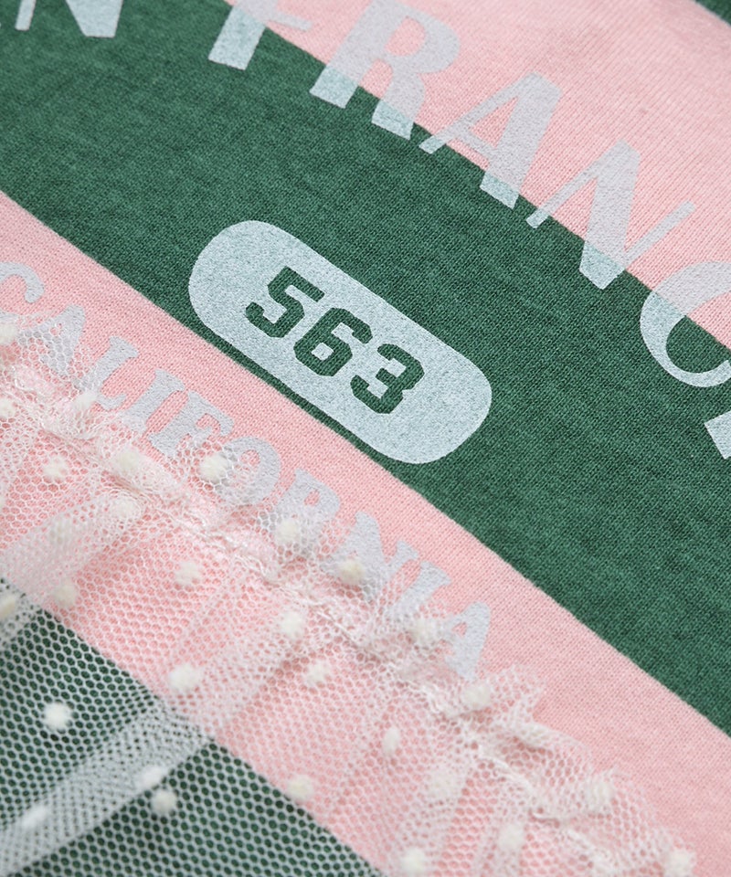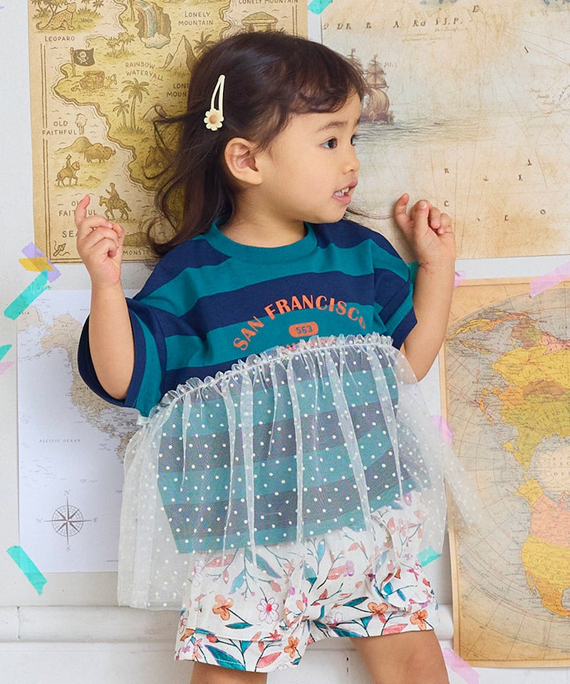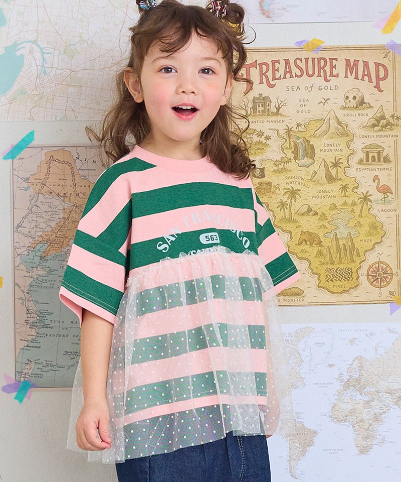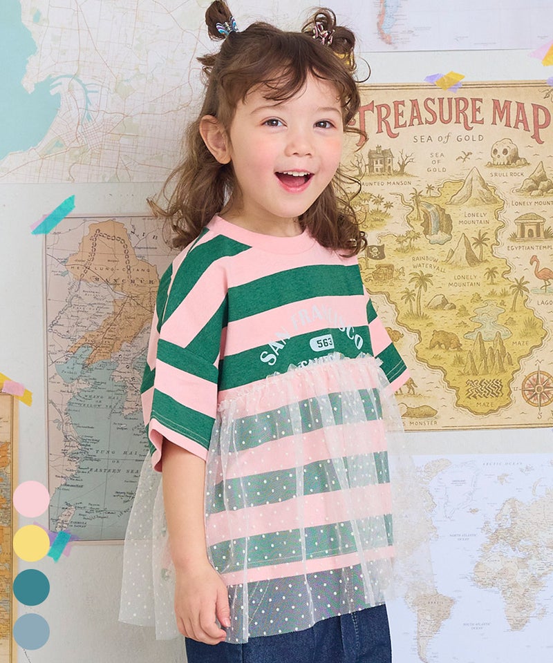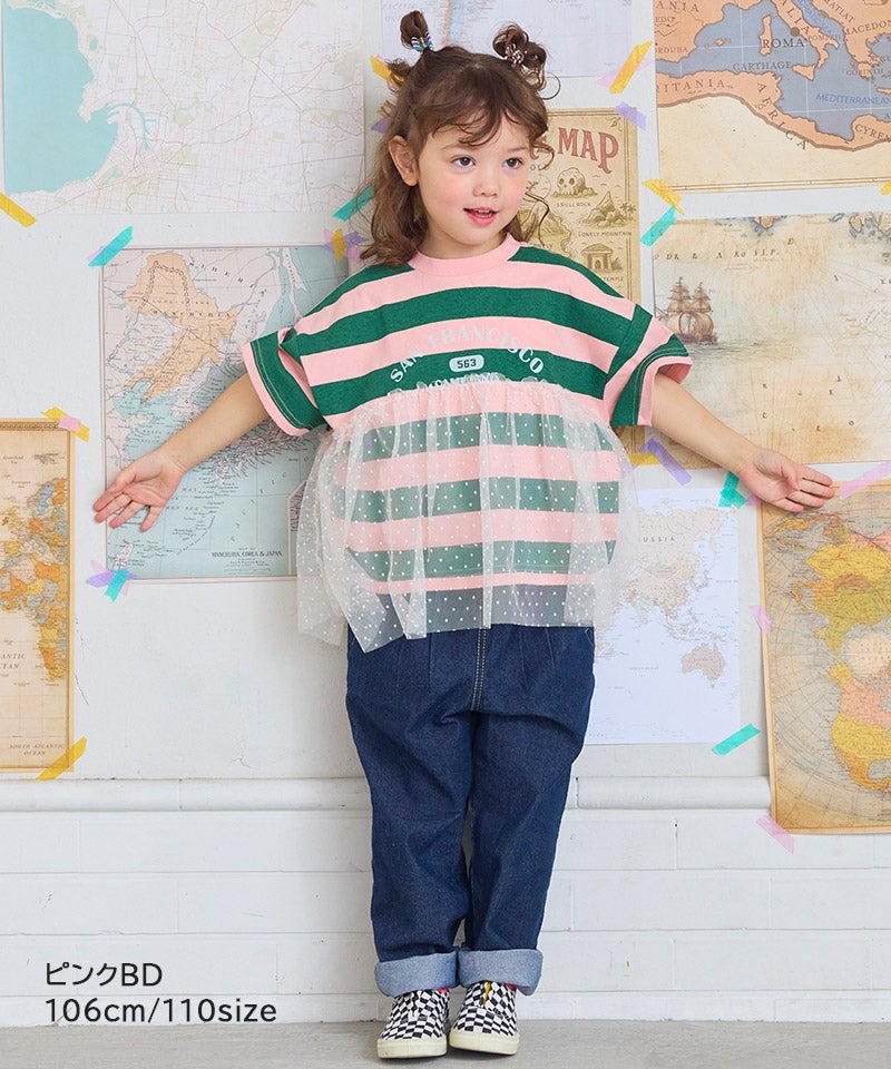 チュール付きボーダー半袖Tシャツ
