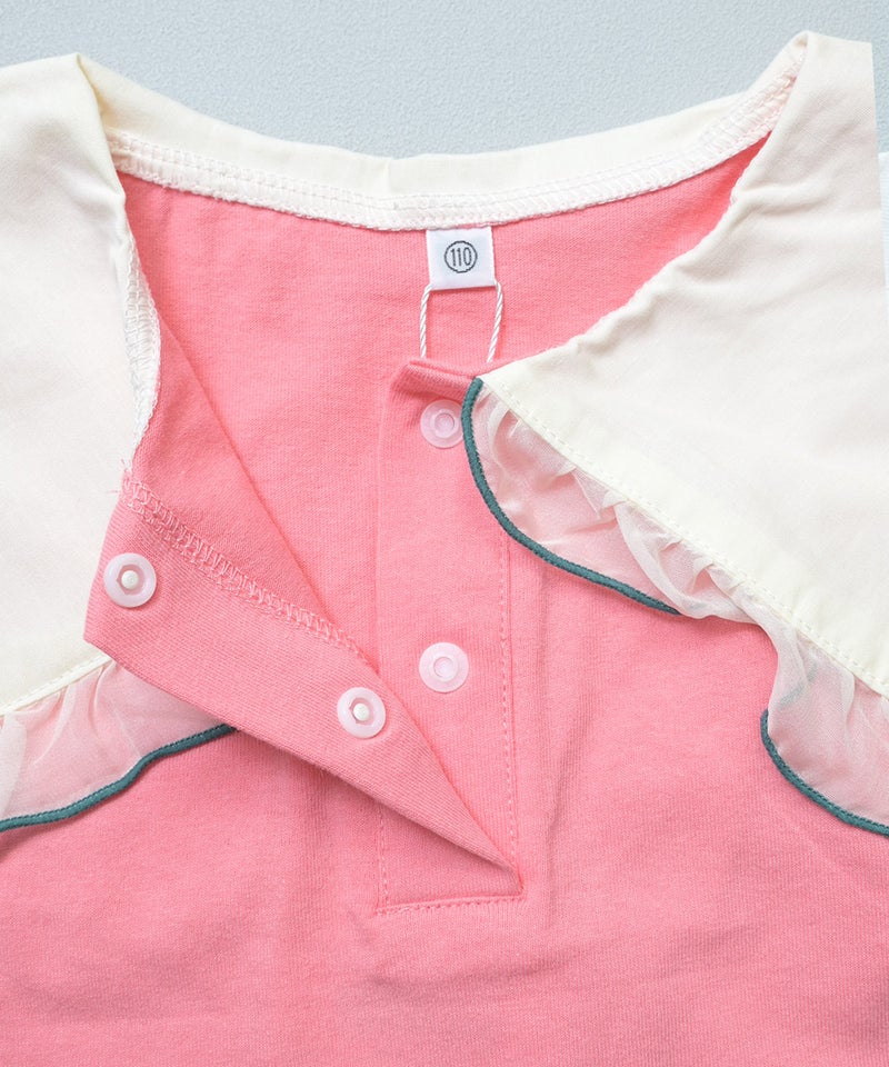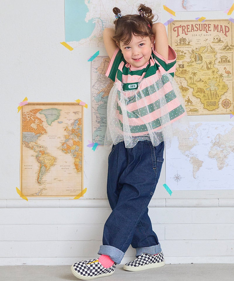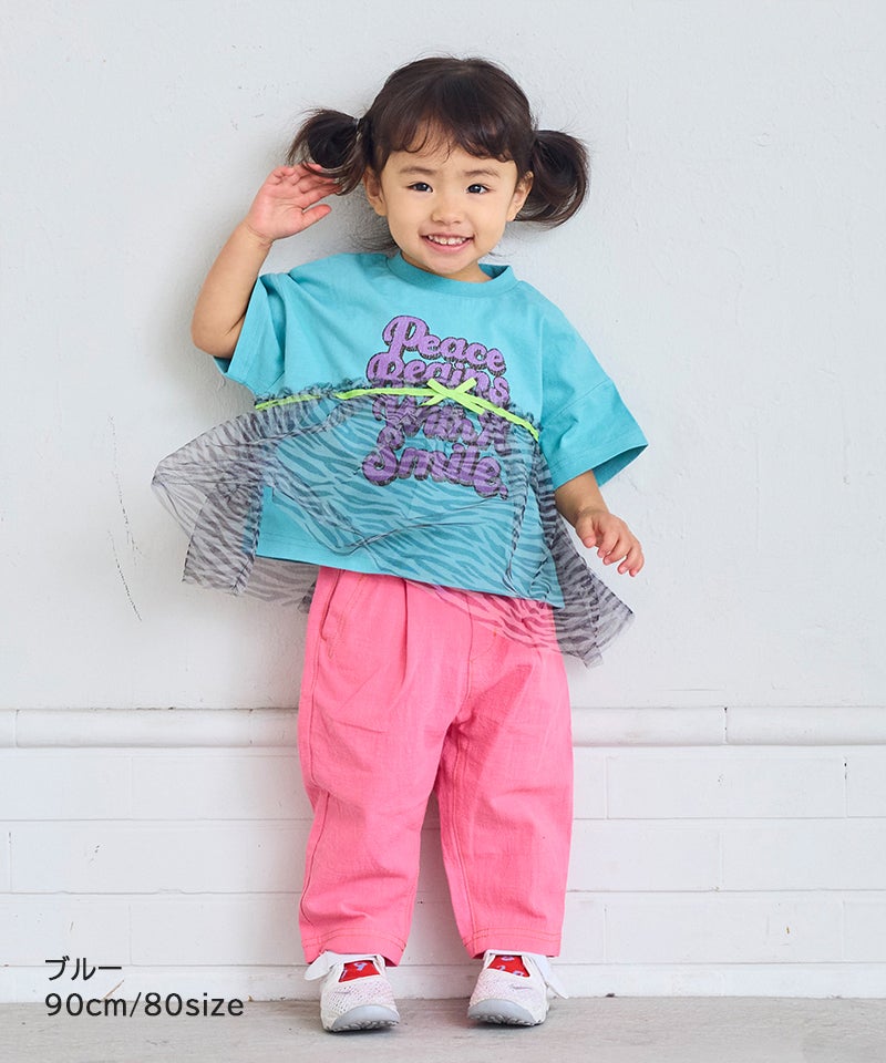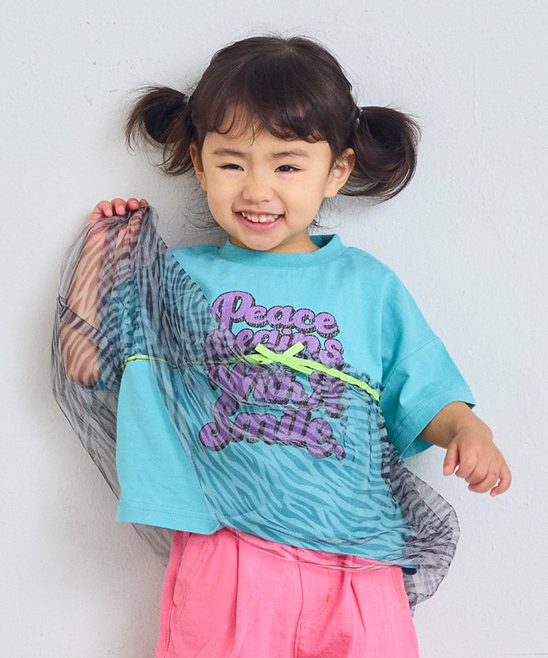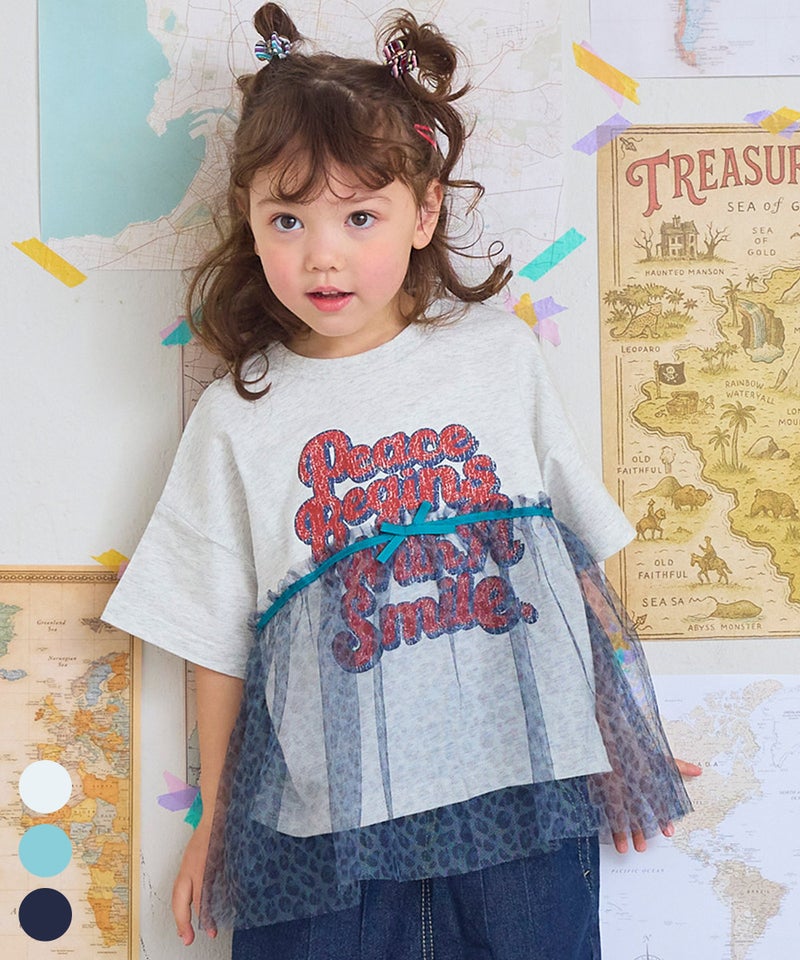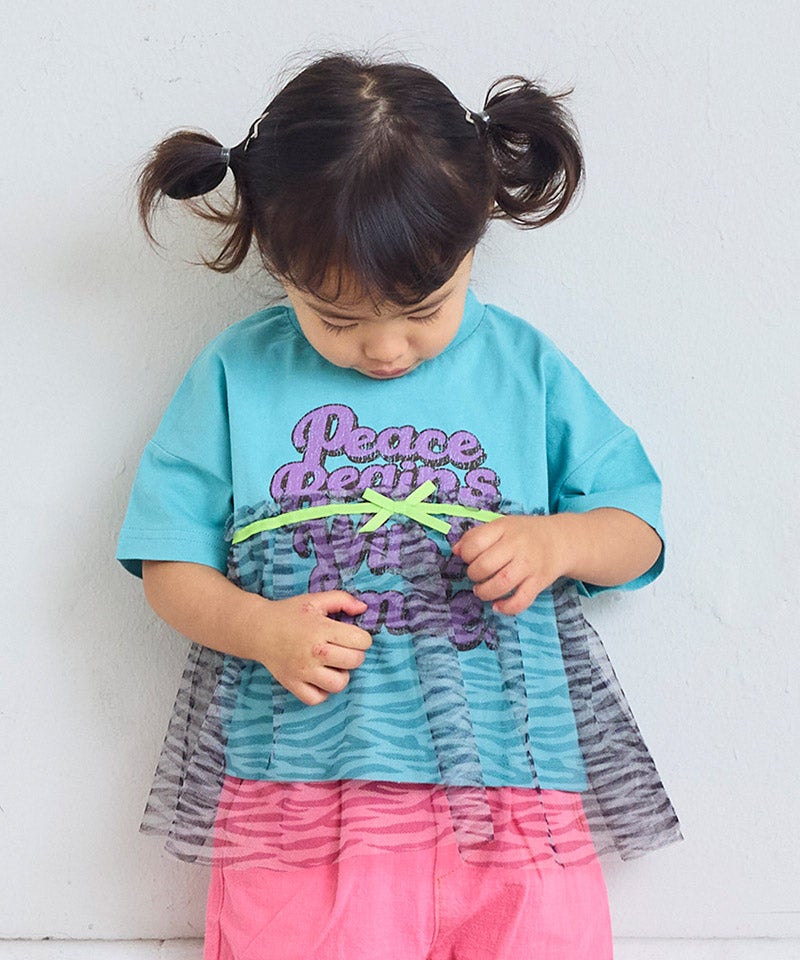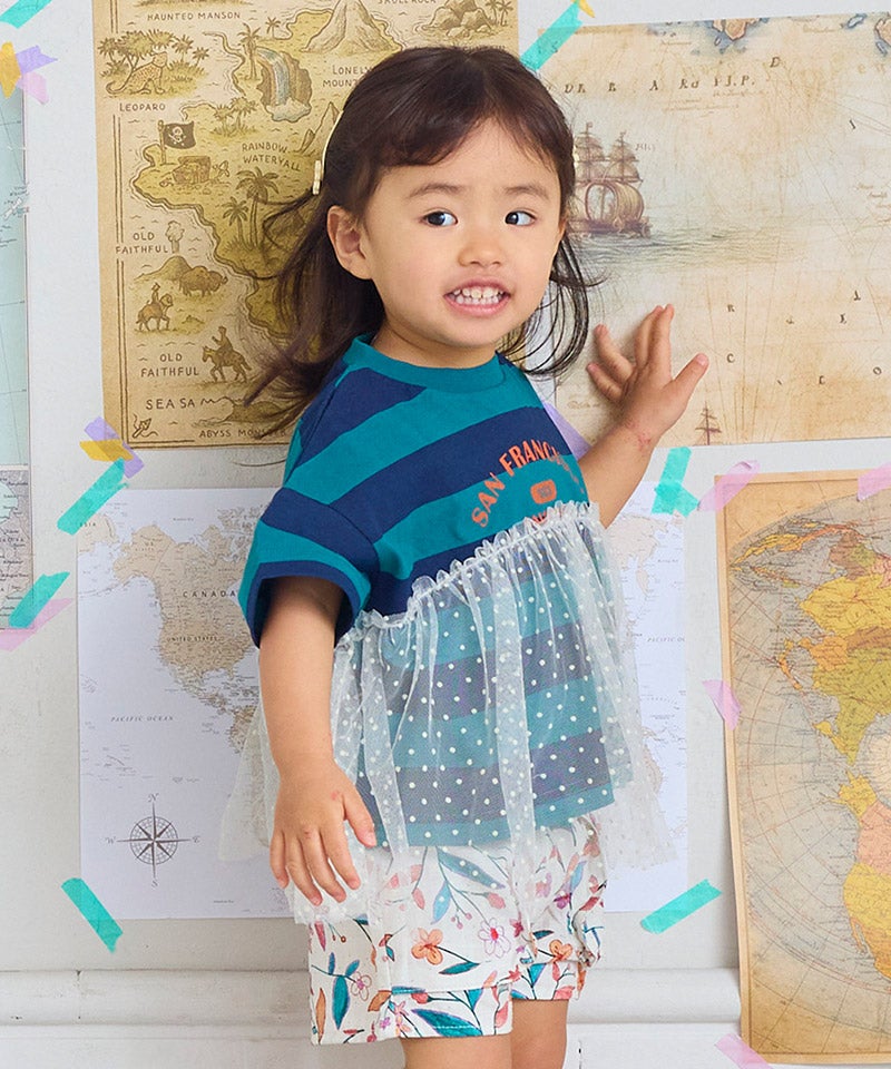 チュール付きボーダー半袖Tシャツ