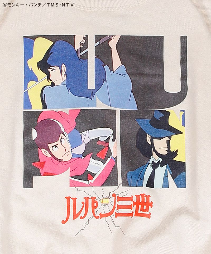 ルパン、次元、五ェ門、不二子などおなじみのキャラクターをプリントで表現。