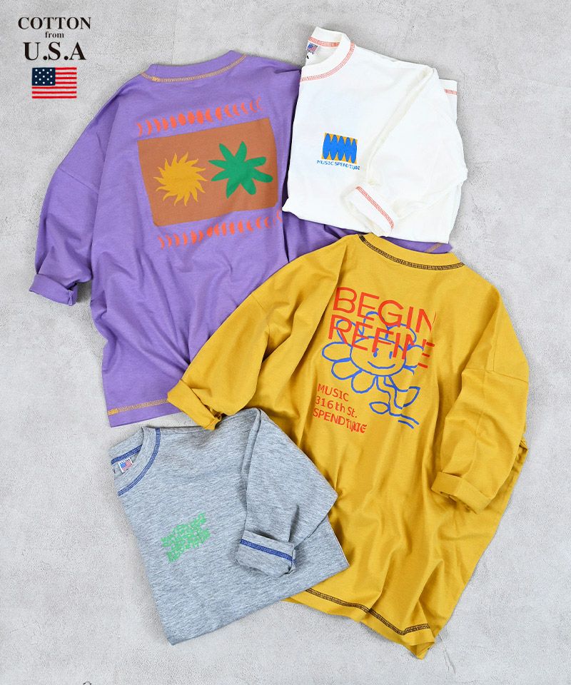 【COTTON from U.S.A】リブ付きプリントロンT