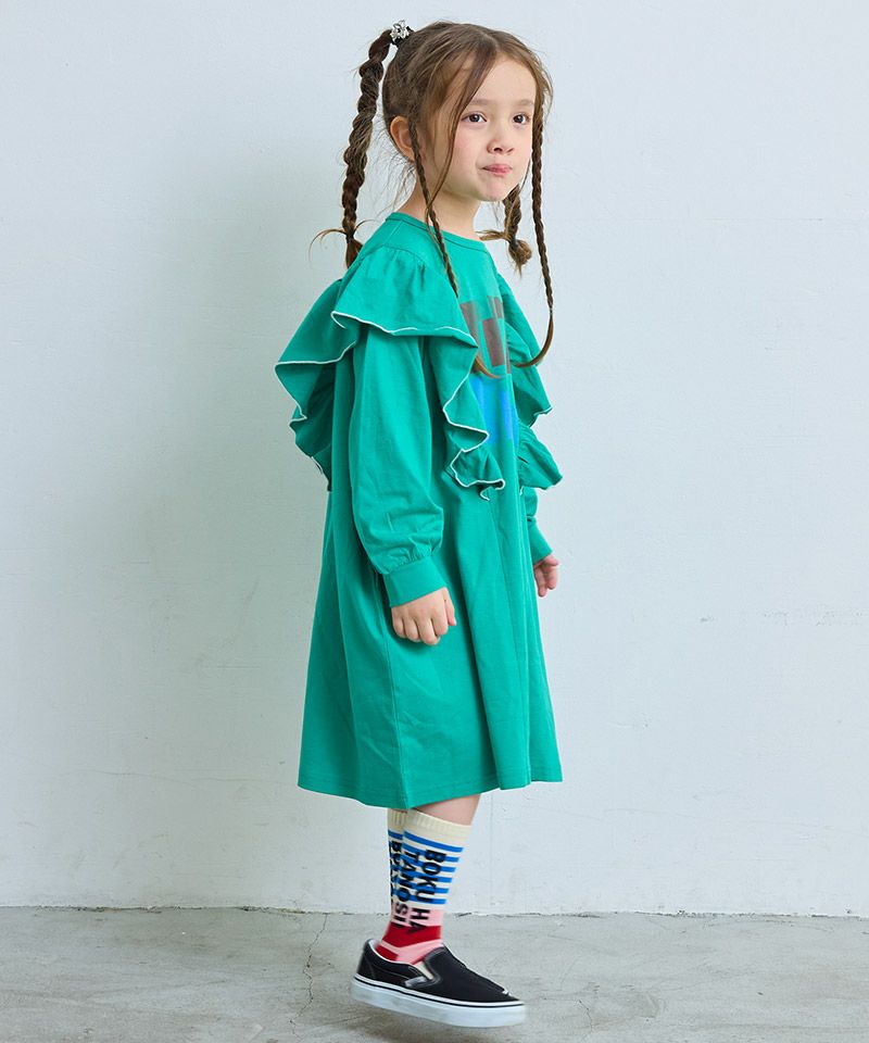 【COTTON from U.S.A】長袖ラッフルワンピース