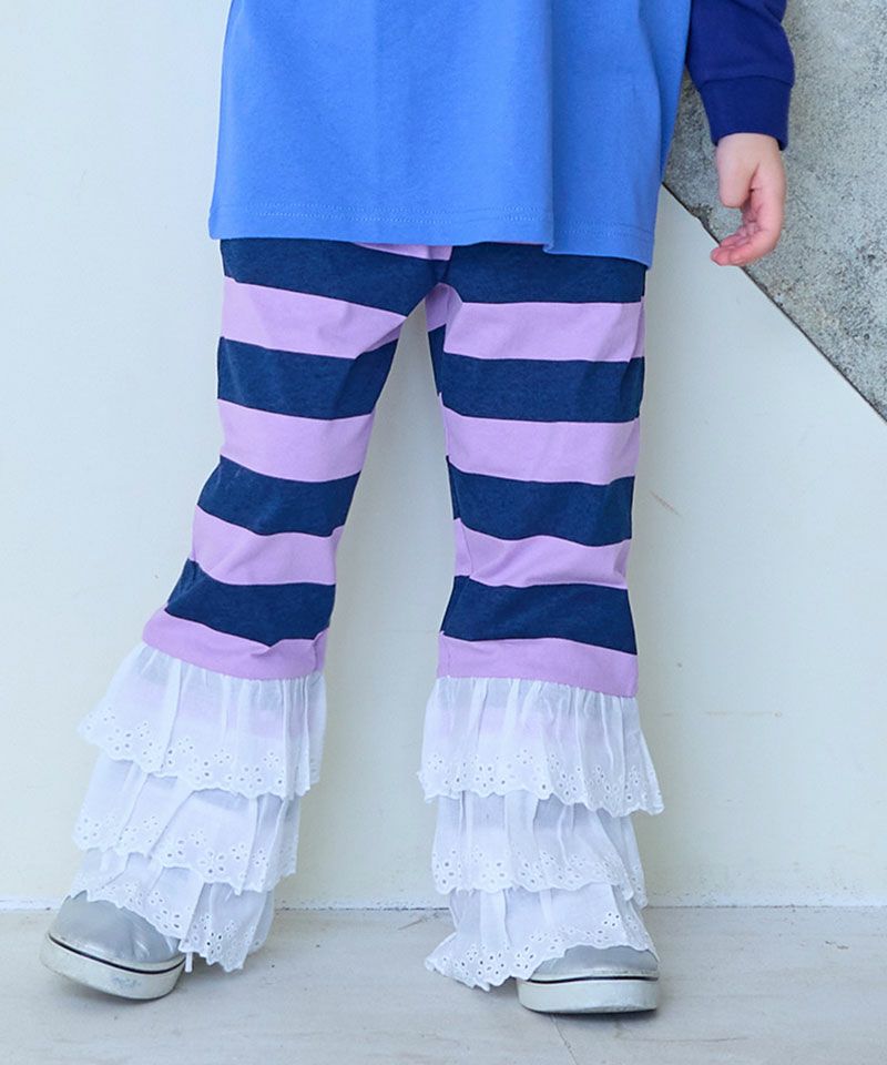 レースフリルティアードボーダーパンツ
