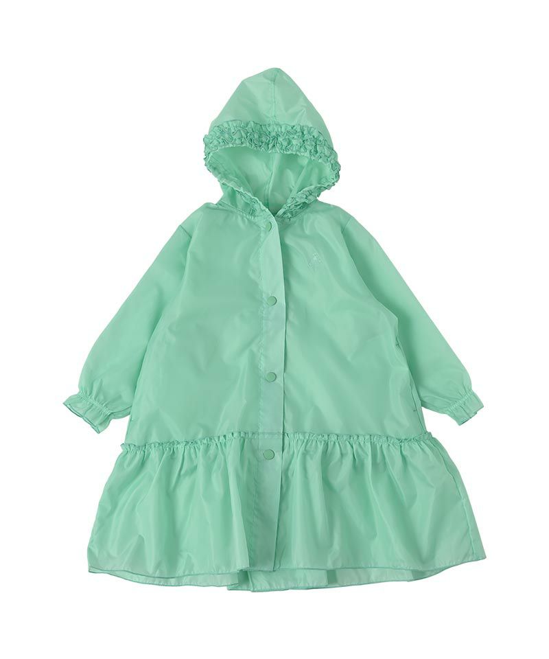 フリルが可愛い、ガーリーデザインのレインコート