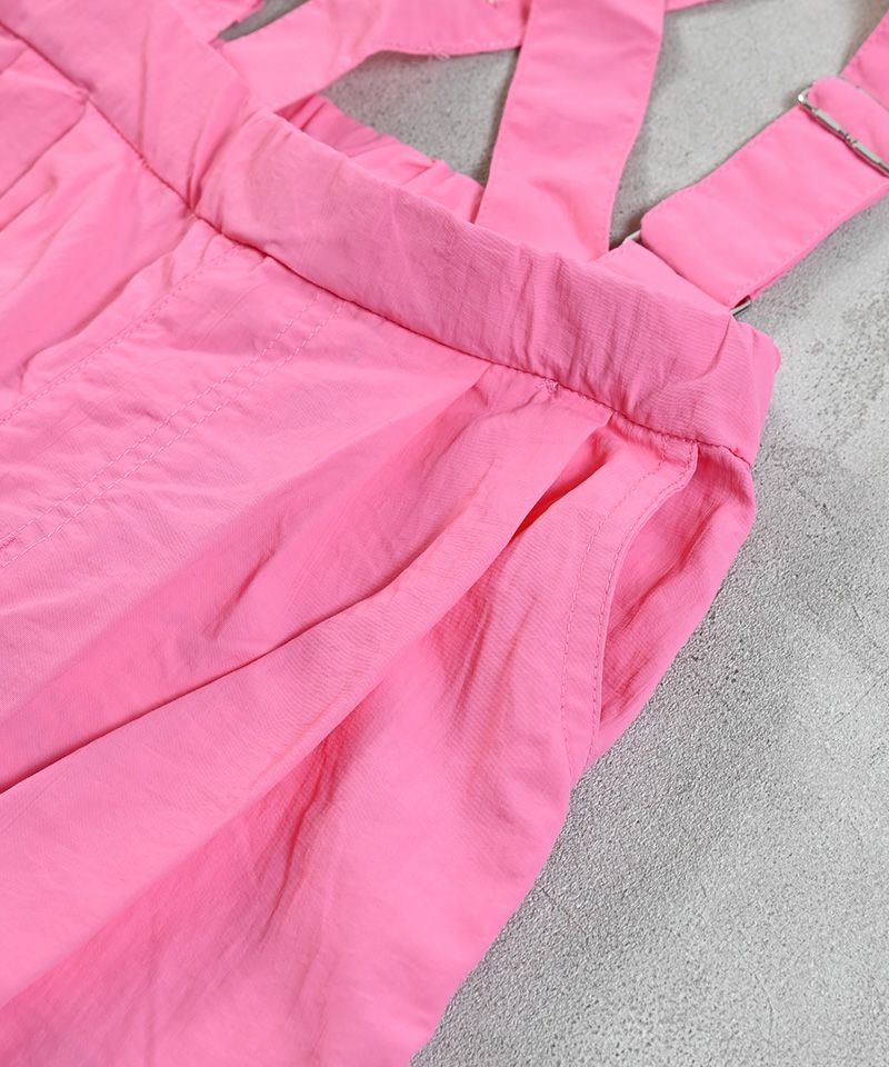 【春夏っぽいビビットな配色のサスペンダーパンツ】