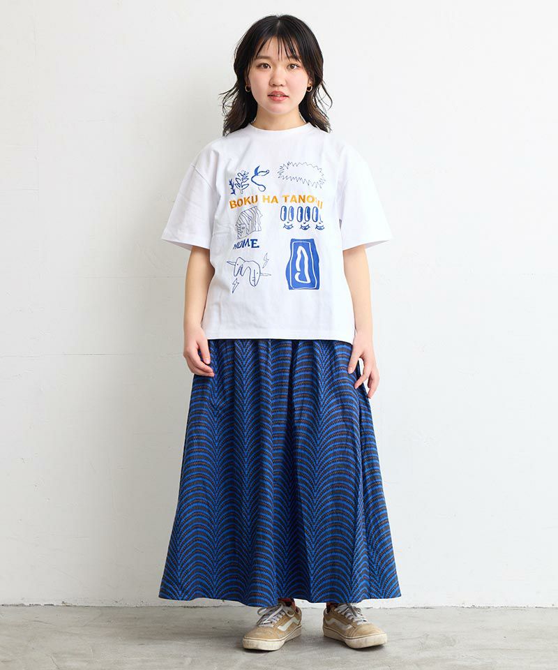 フロントに『BOKU HA TANOSII』の刺繍と遊び心あふれるラクガキプリント。