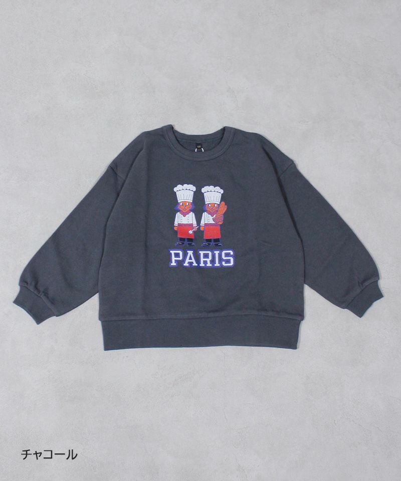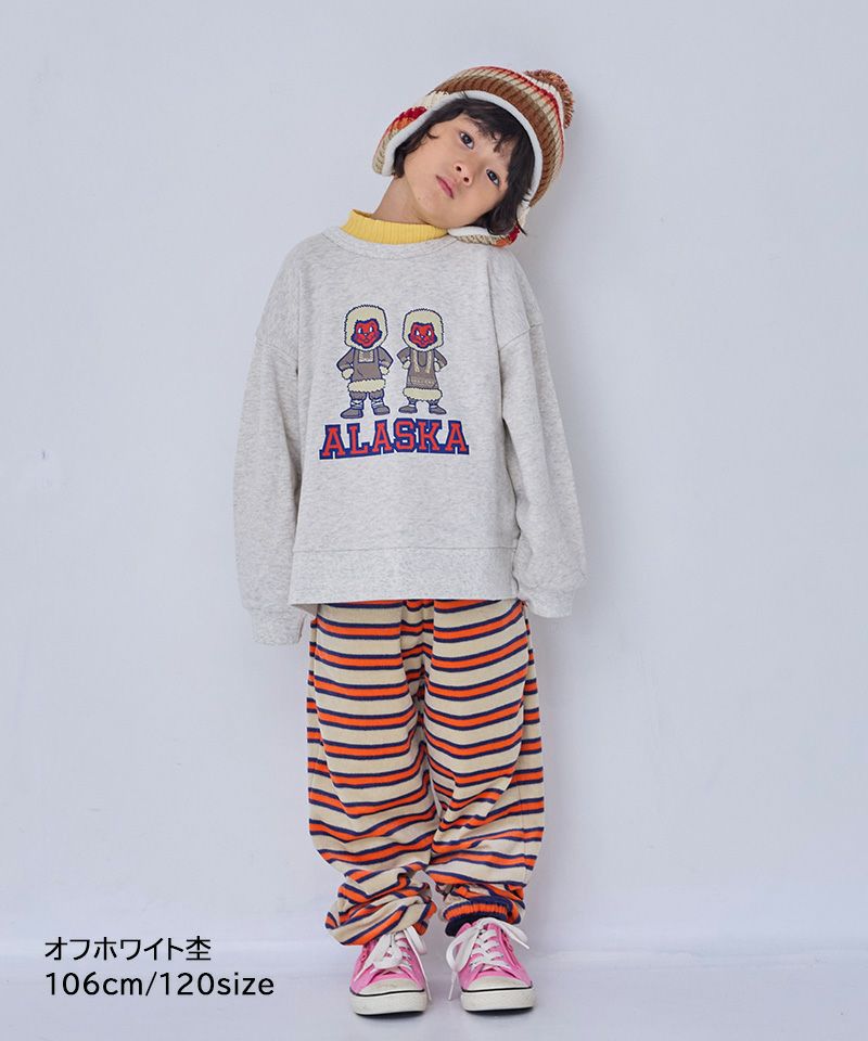世界の町をイメージしたグラフィックが印象的なトレーナー。