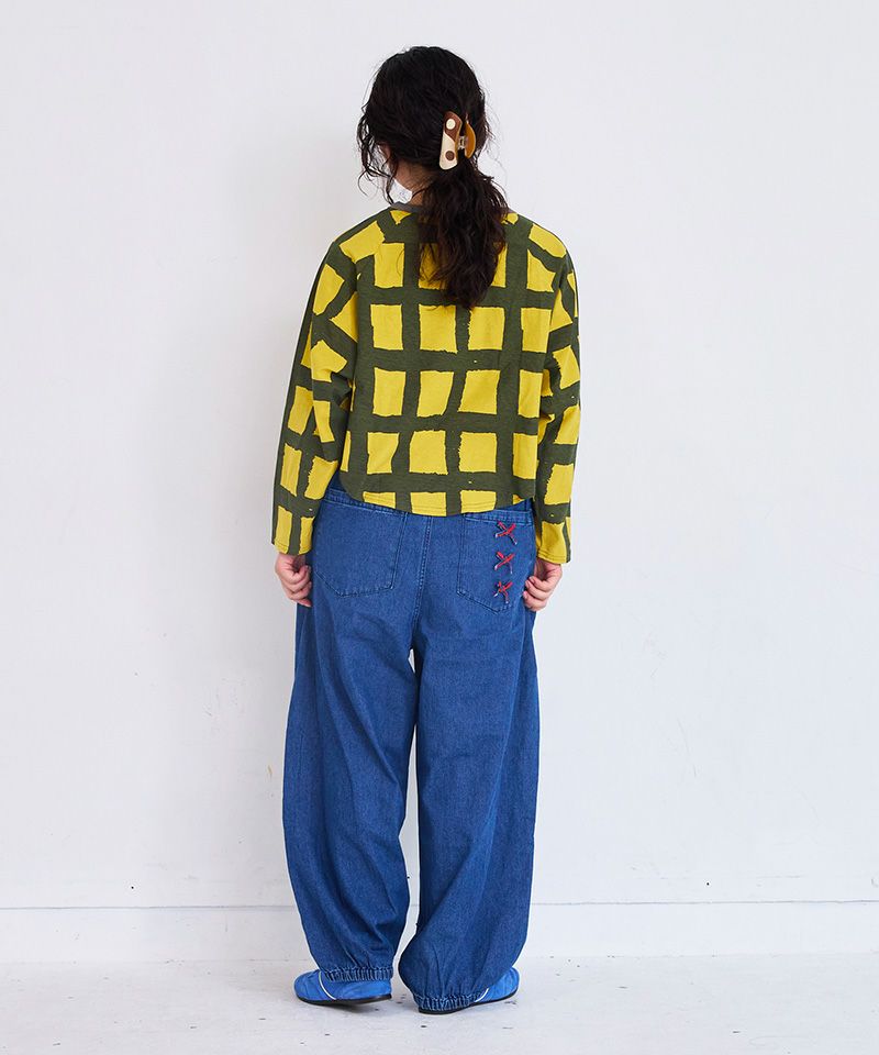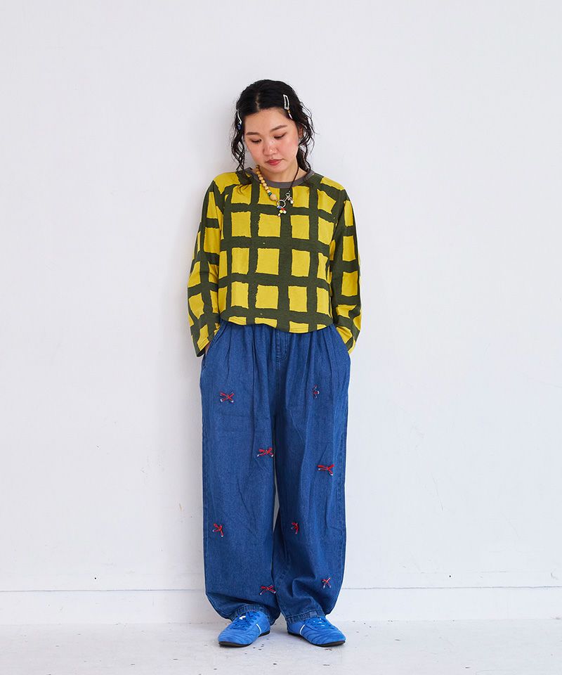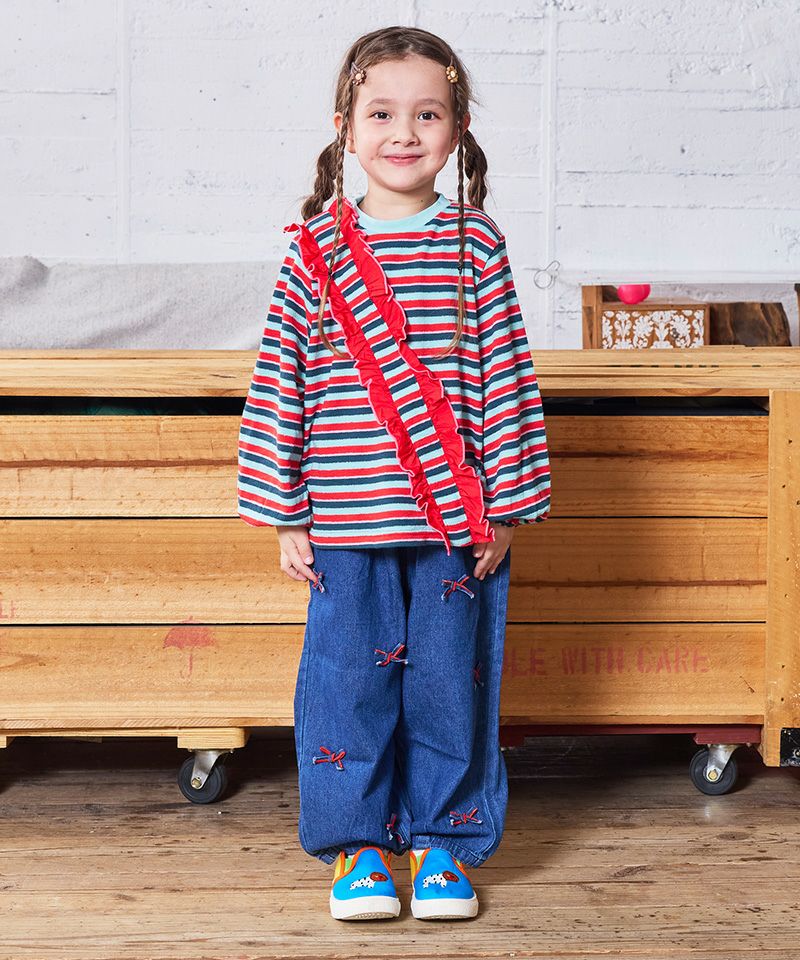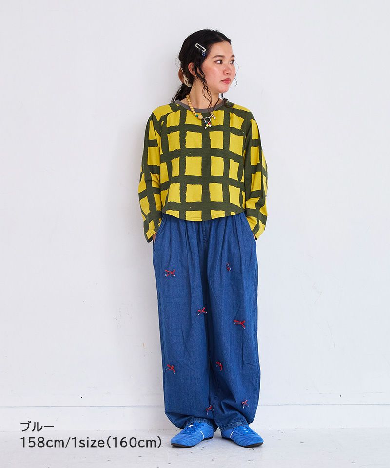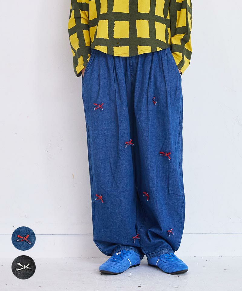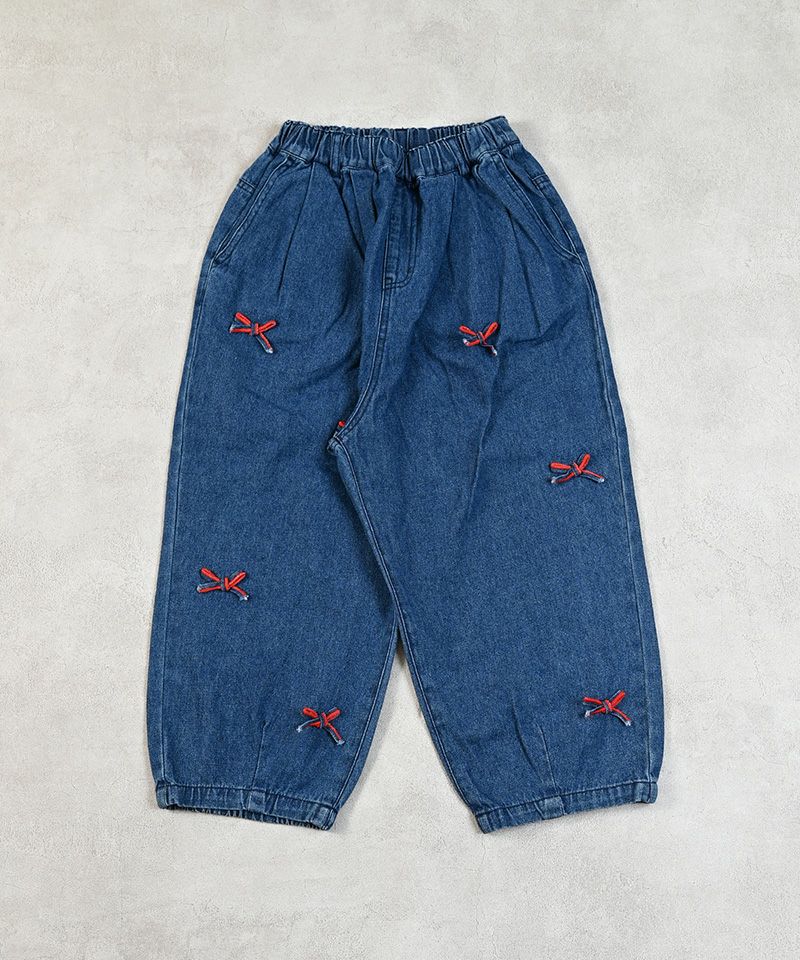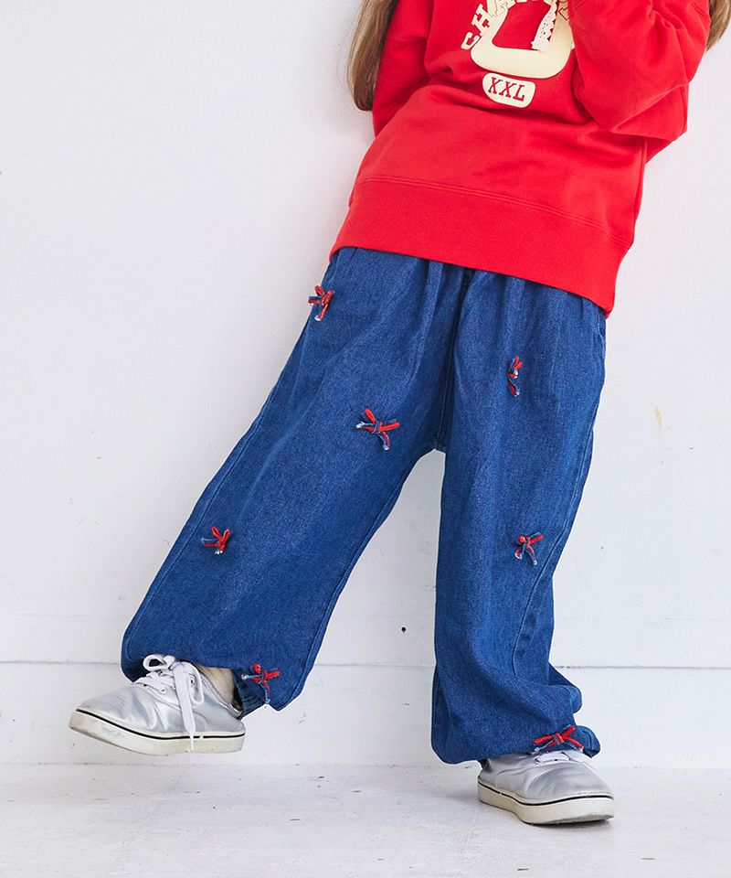 リボンいっぱいデニムバレルパンツ
