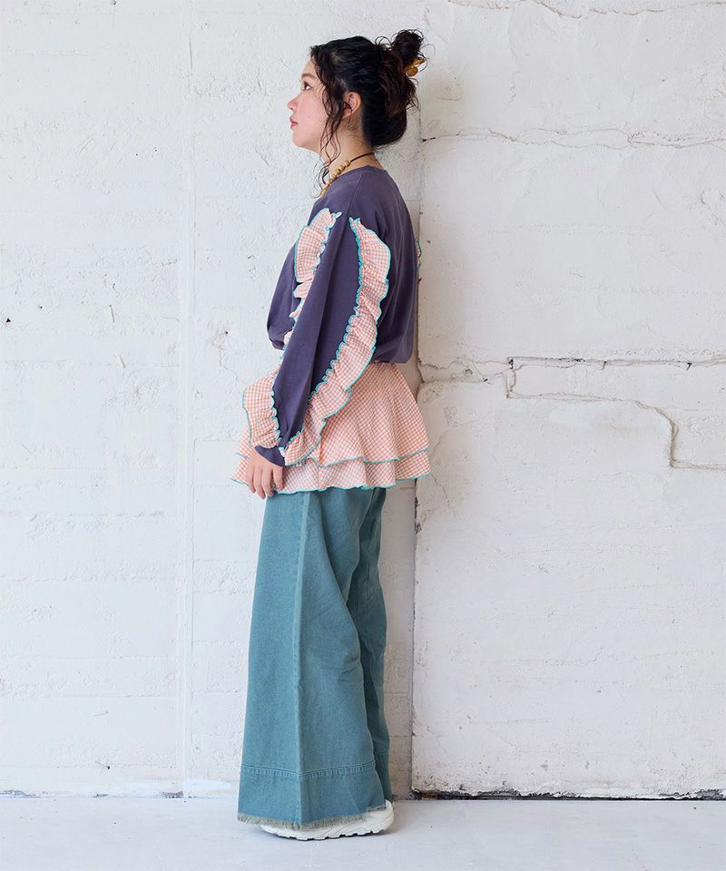ハイウエストフリルデニムパンツ