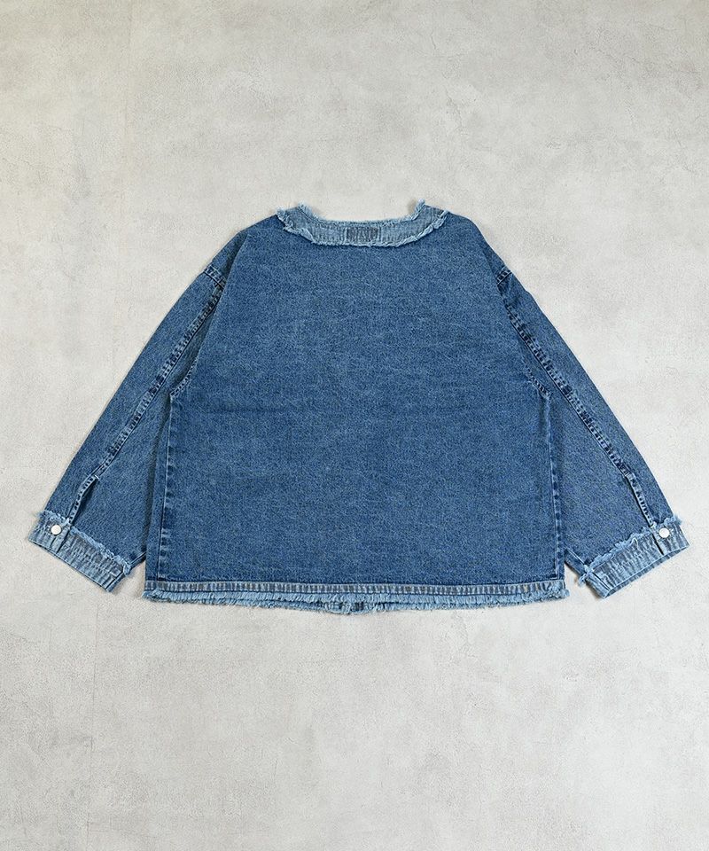ノーカラーデニムジャケット