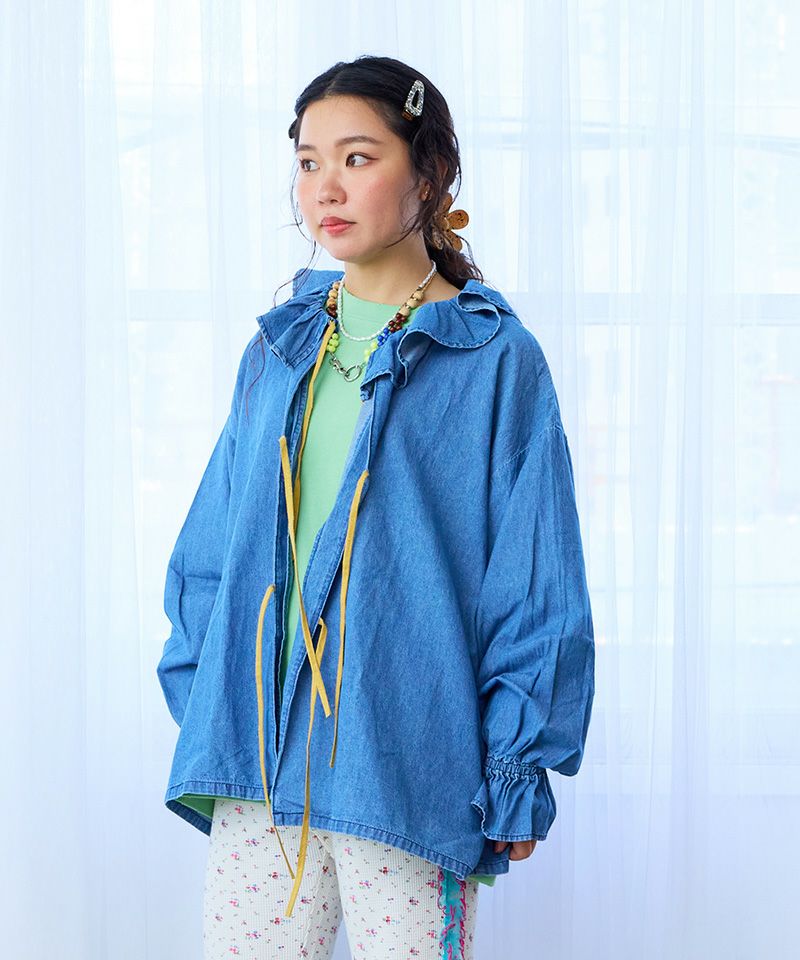 デニム素材ながらも軽やかな印象で、スカートやワイドパンツと合わせればガーリーに、デニムパンツやカーゴパンツと合わせればカジュアルに楽しめます。