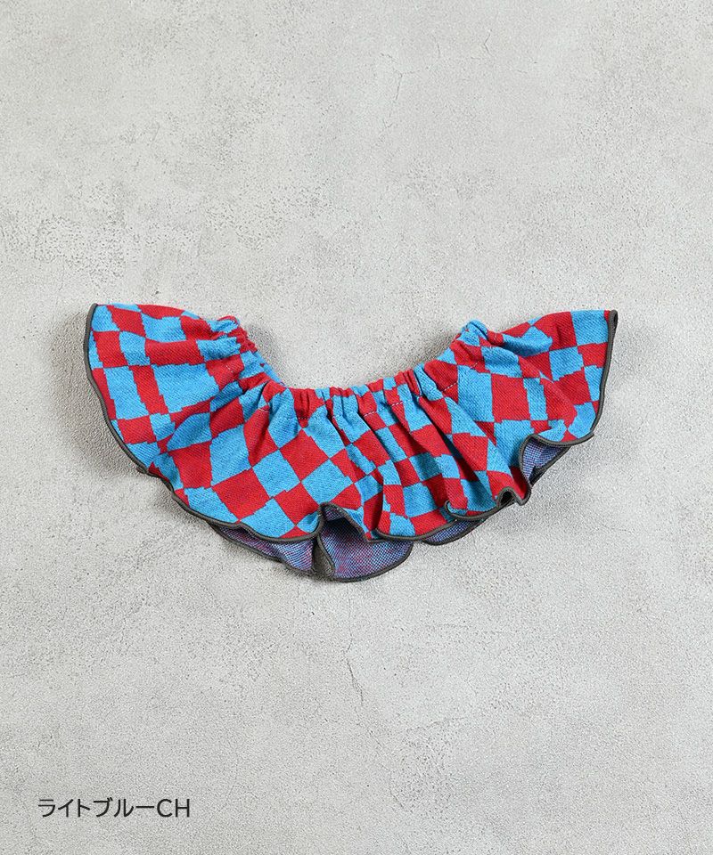 首元をぐるりと彩るフリルがアクセントになり、シンプルなお洋服にも映えるデザインです。