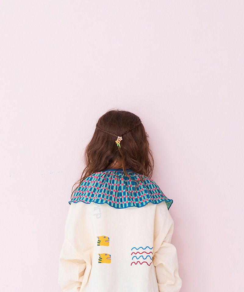 マーキーズオリジナルのチェック柄が印象的なフリルカラー。