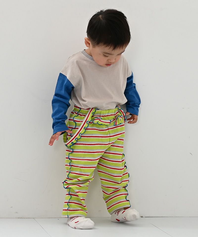 首回りのリブと、裾のパイピングの配色がたまりません。