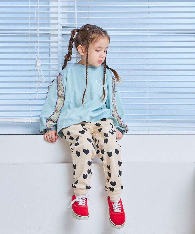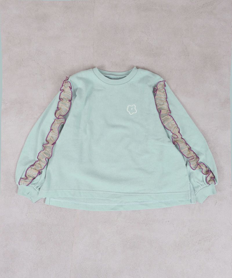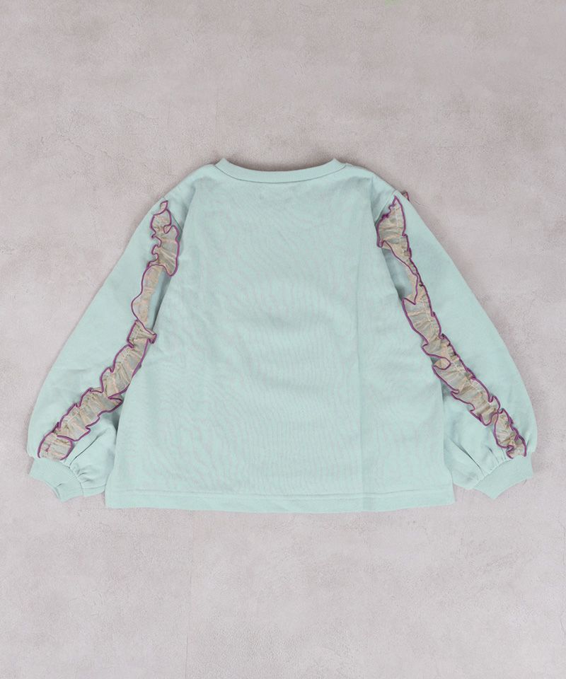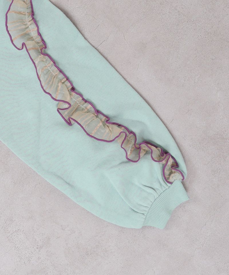 肩にあしらったライン状のフリルがポイントのトレーナー。