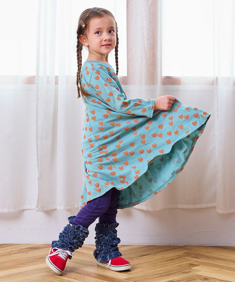 すとんと落ちるAラインシルエットで、動くたびにふわっと広がる女の子らしいデザインです。