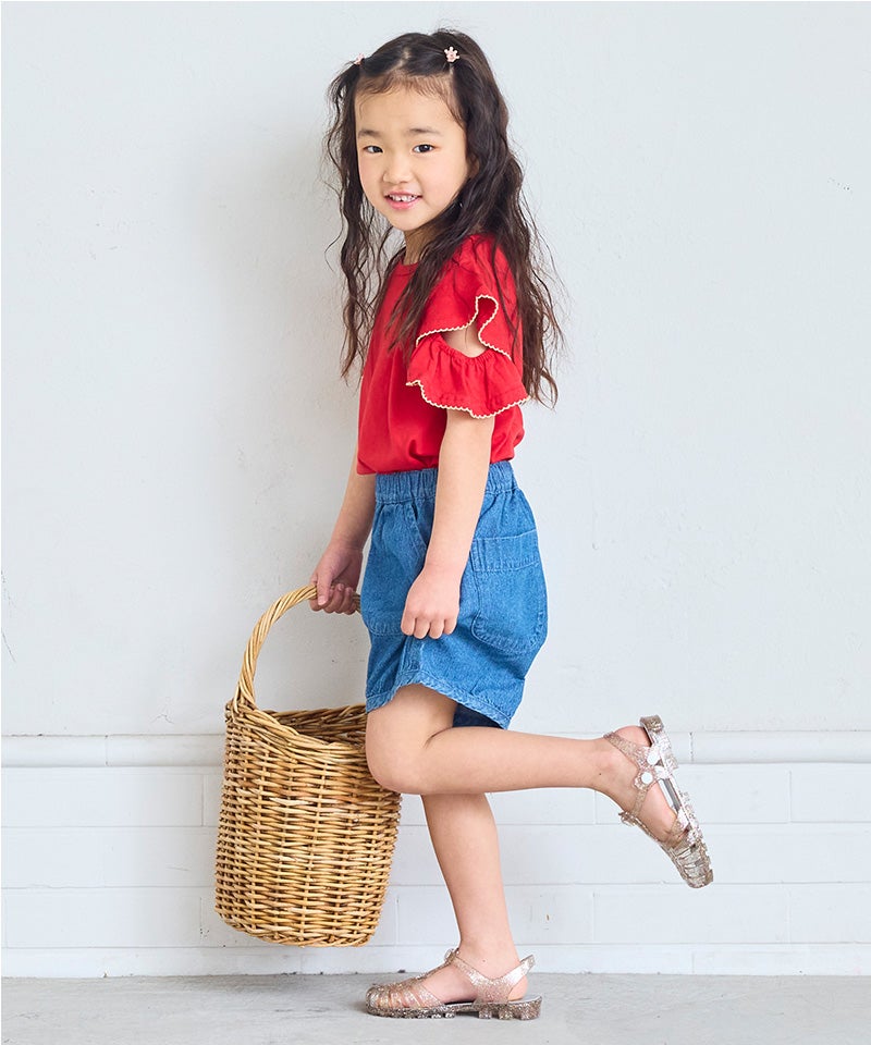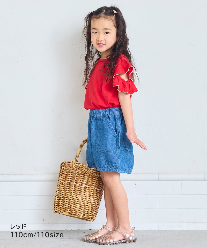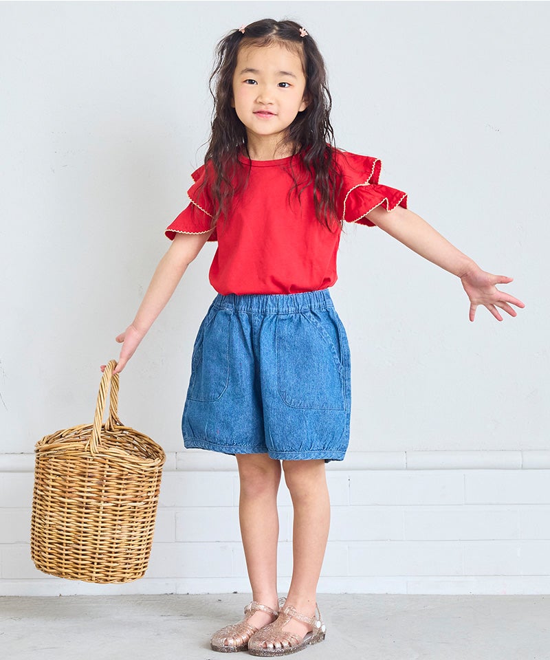 【親子お揃い】デニムサイドフリルバギーパンツ