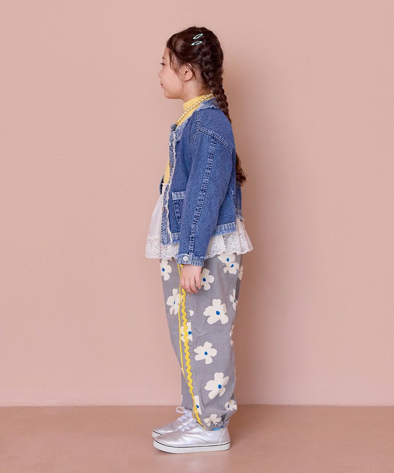 デニムのカジュアル感を引き締めつつ、フリンジ加工とのコントラストでアクセントになっています。