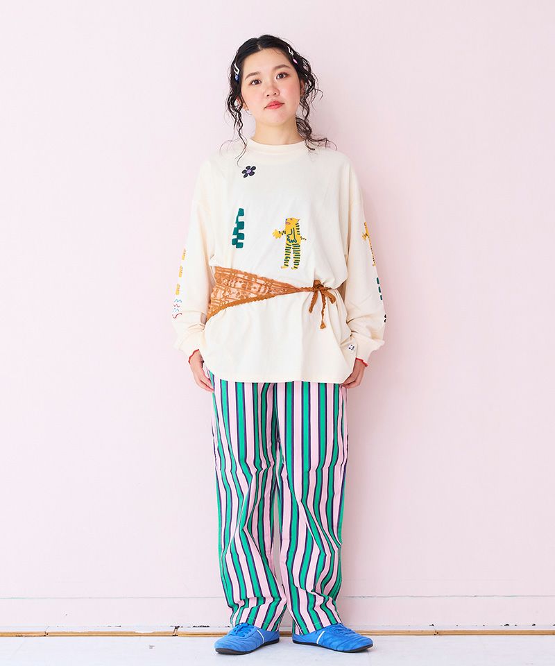 ゆったりとしたデザインなので"ゆるだぼ"シルエットコーデがオススメ。