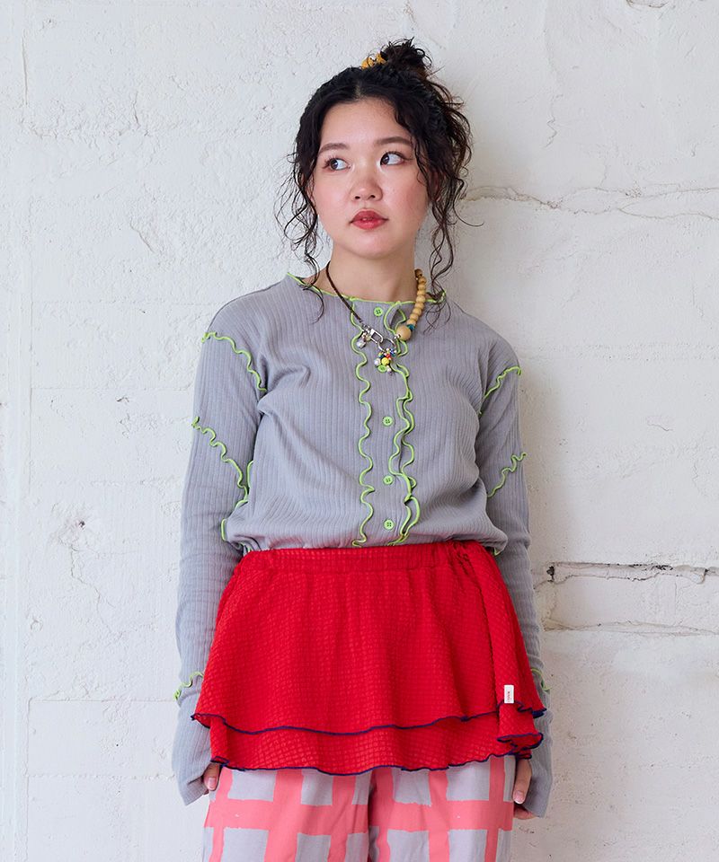 シンプルなインナーに羽織るとコーデが華やかに仕上がります。