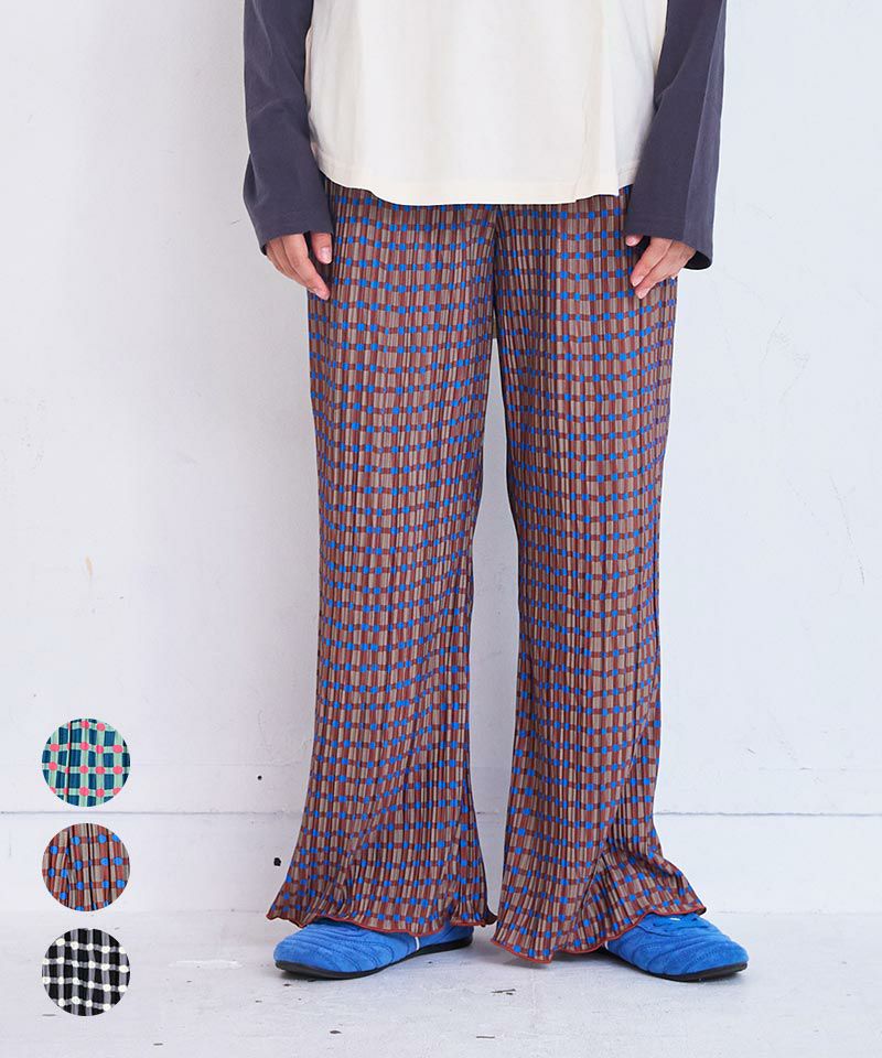 マーキーズオリジナルのチェック柄が印象的なフレアパンツ。