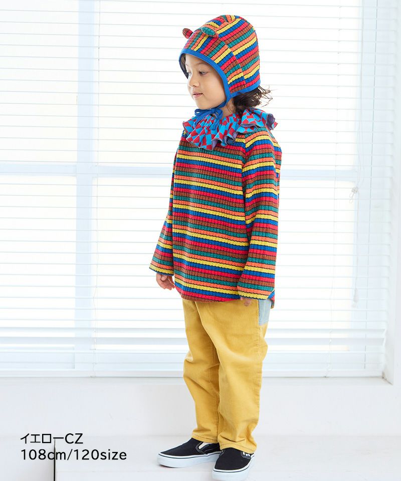 存在感のあるパンツなので、どんなトップスでも合わせやすいです。