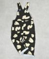 インパクトのある総柄プリントが目を引く、ミニ裏毛素材のサロペット。