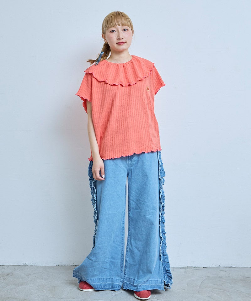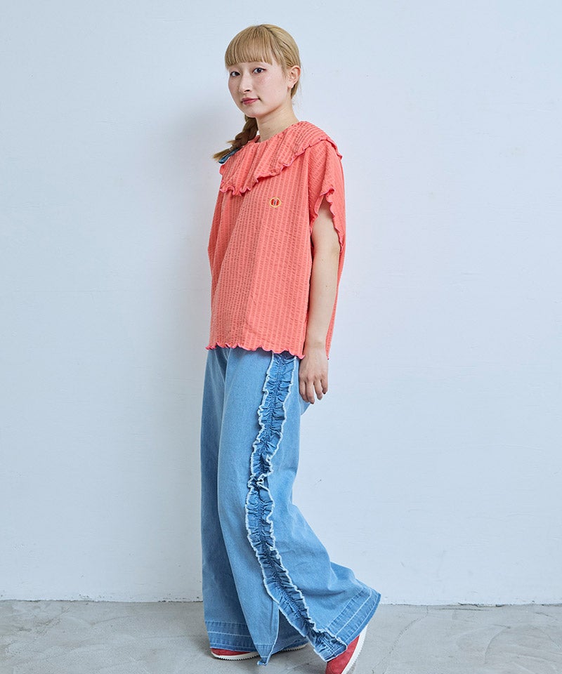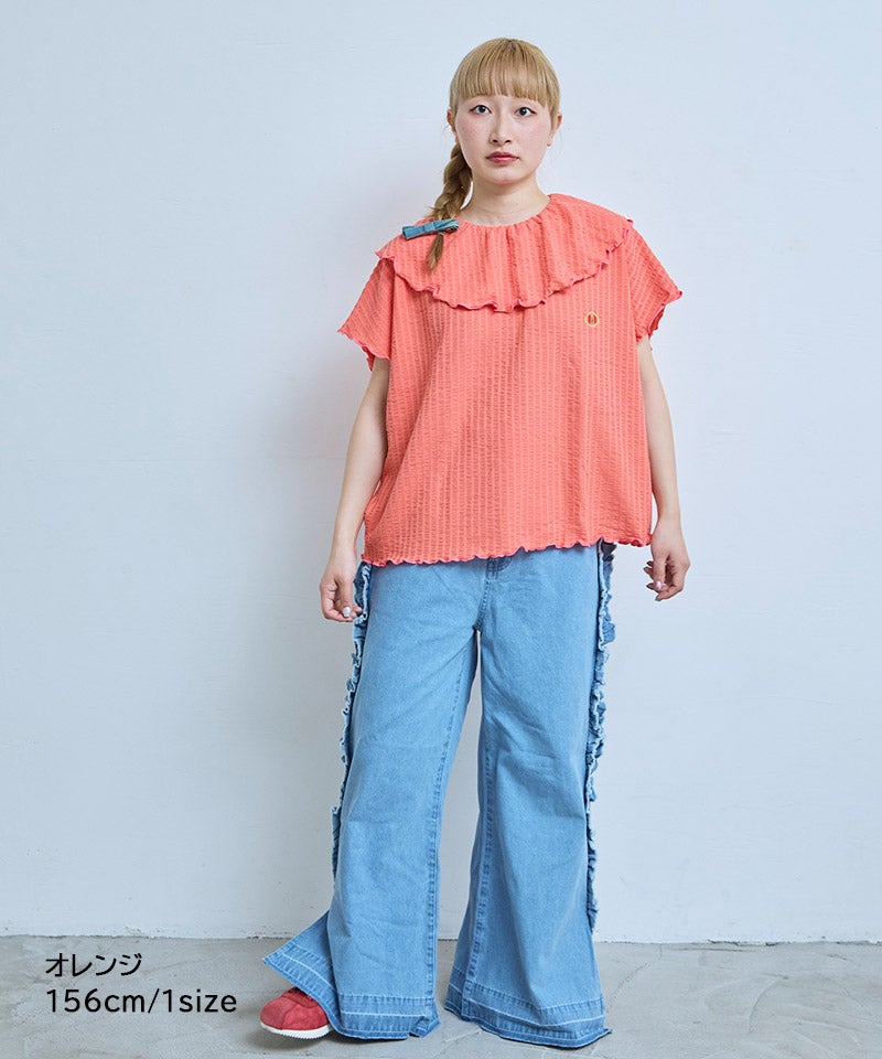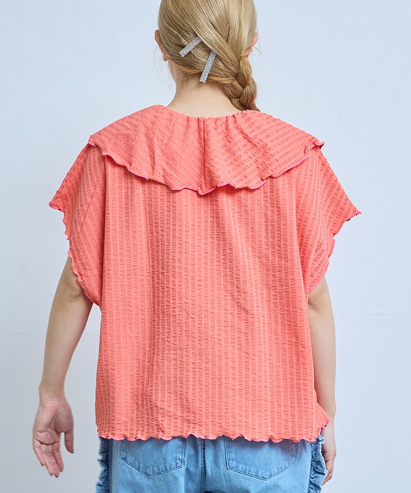 ニットサッカーフリルカラーカットソー / 大人サイズ