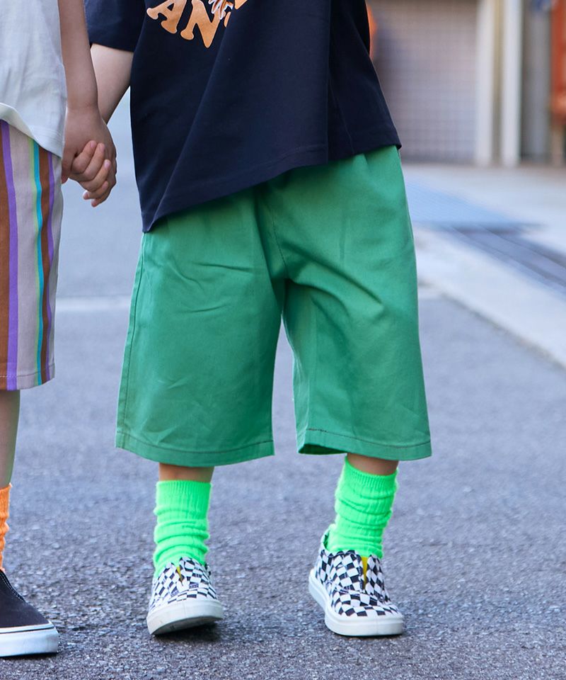 何にでも合わせやすいパンツで、通学・通園にも使いやすい万能ショートパンツです。