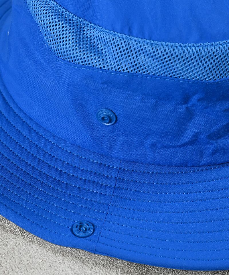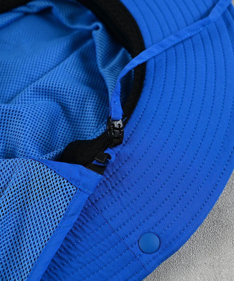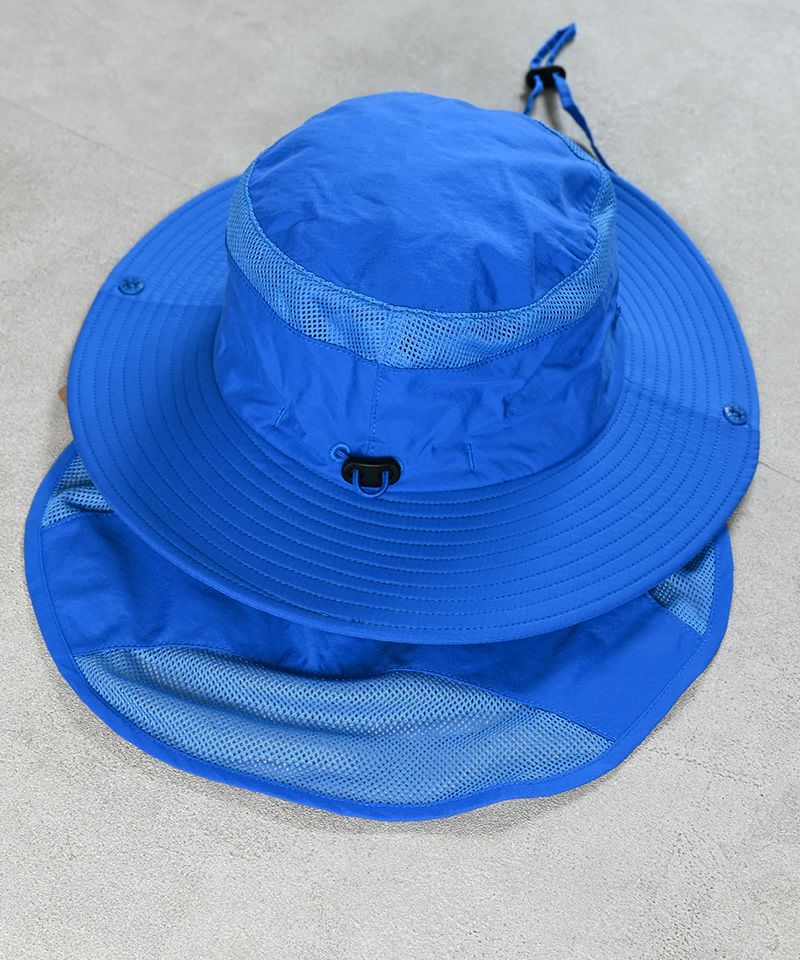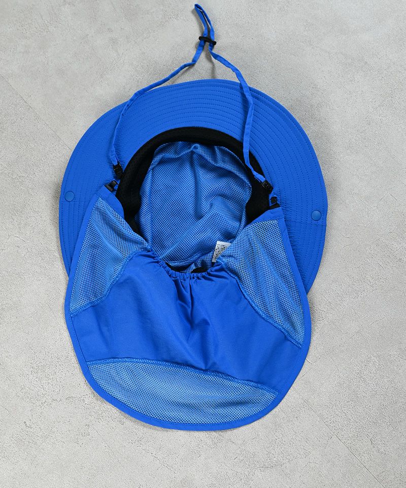 フックで簡単に取り外せるサンシールドは、首まわりの日焼け対策に有効。